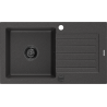 Mexen Pablo chiuvetă de granit 1-cameră cu scurgător 752 x 436 mm, negru/argintiu metalizat, sifon negru - 6510751010-73-B