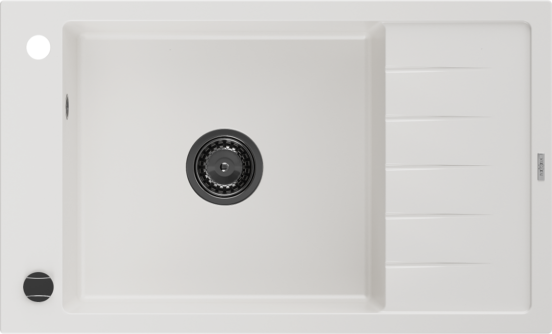 Mexen Elias chiuvetă de granit cu 1 compartiment cu scurgător 795 x 480 mm, alb, sifon negru - 6511791005-20-B