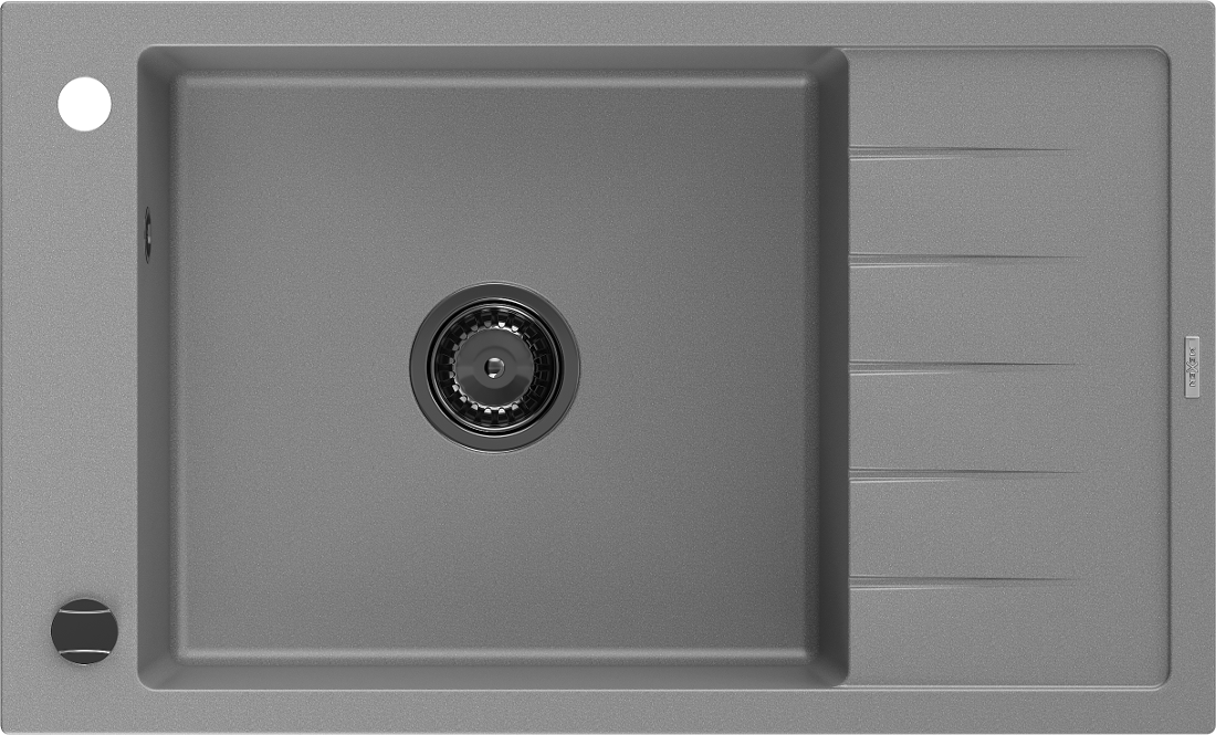 Mexen Elias chiuvetă de granit cu 1 cuvă și scurgător 795 x 480 mm, gri, sifon negru - 6511791005-71-B