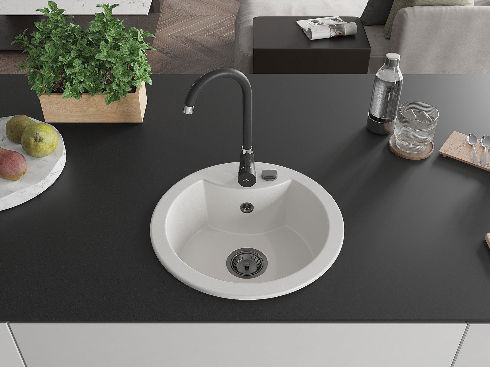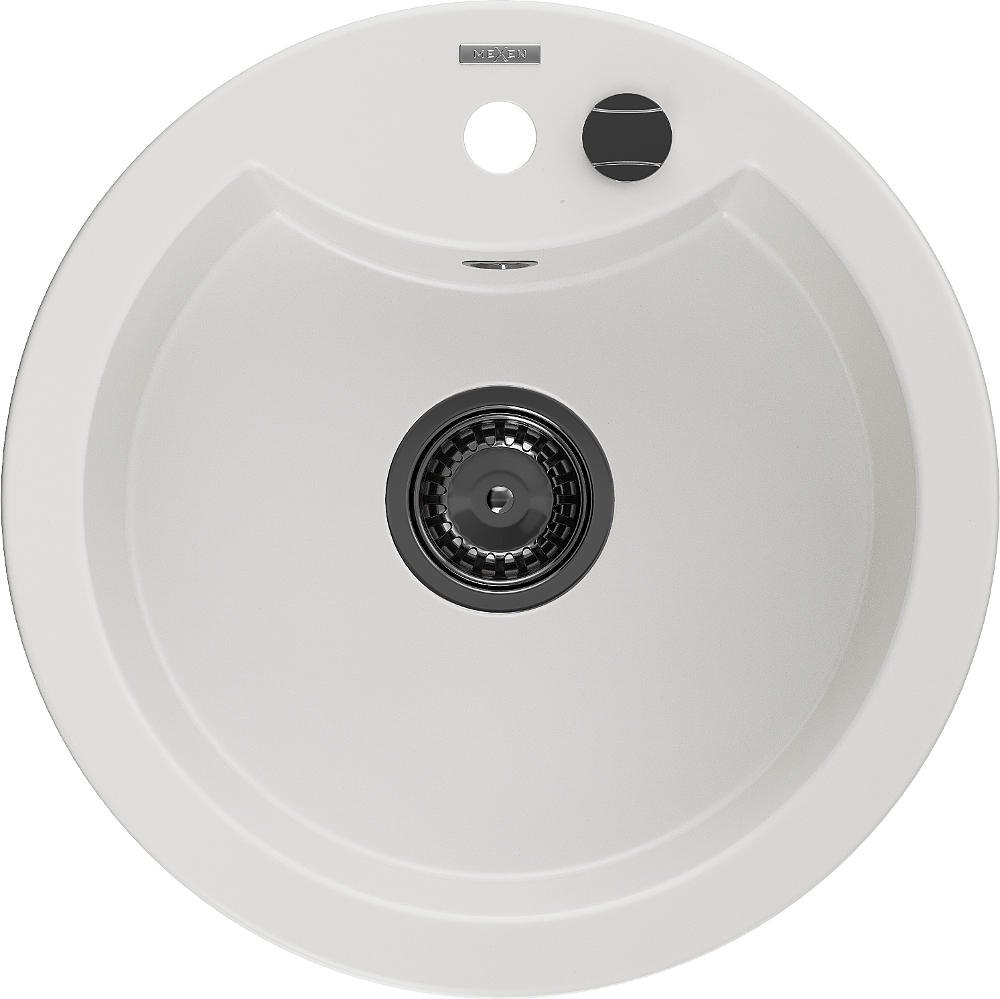 Mexen Diego chiuvetă de granit cu 1 compartiment 488 x 480 mm, alb, sifon negru - 6512481000-20-B