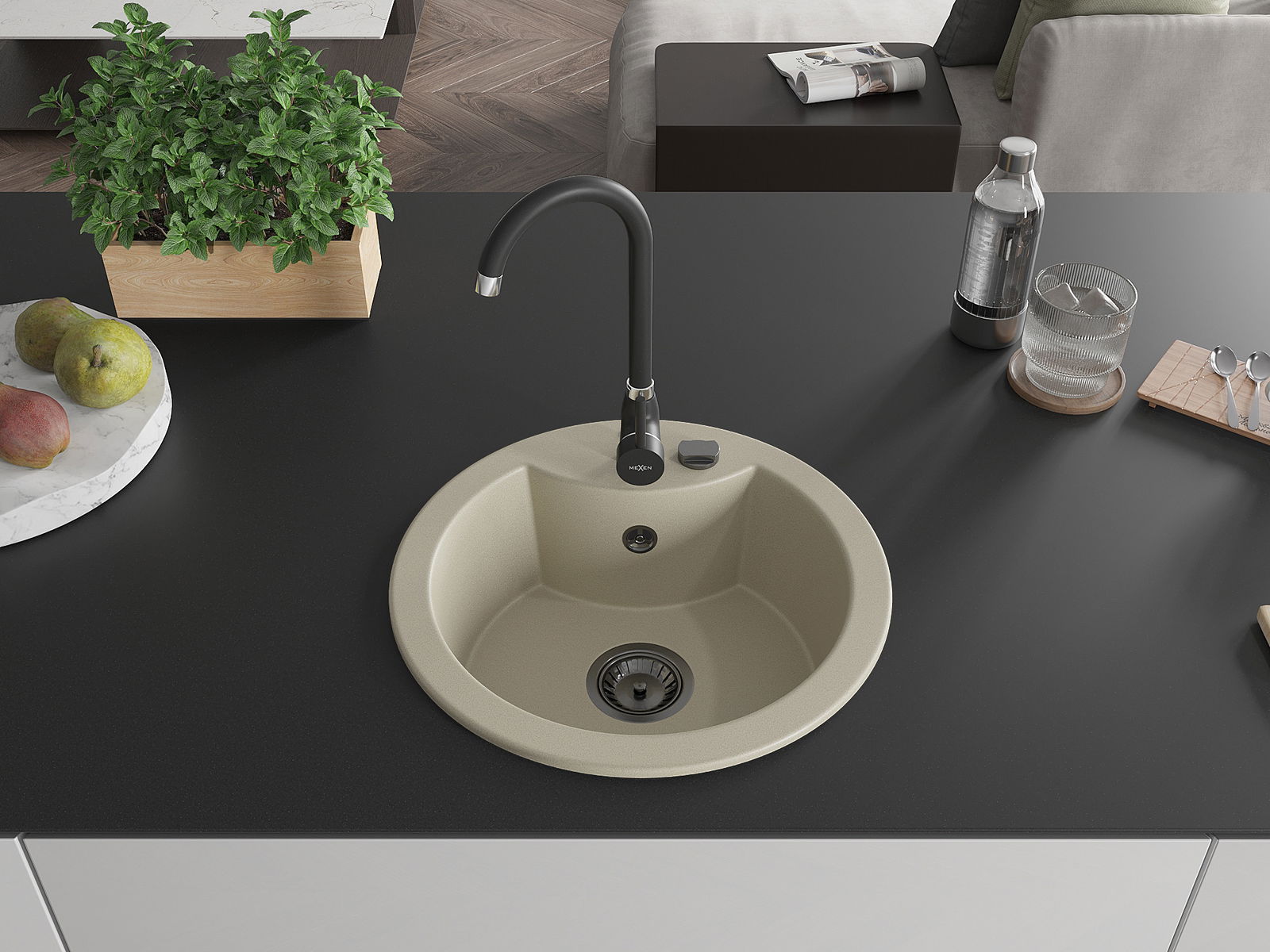 Mexen Diego chiuvetă granitică cu 1 compartiment 488 x 480 mm, bej, sifon negru - 6512481000-69-B