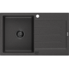 Mexen Bruno chiuvetă de granit cu 1 compartiment și scurgător 795 x 495 mm, negru/argintiu metalic, sifon negru