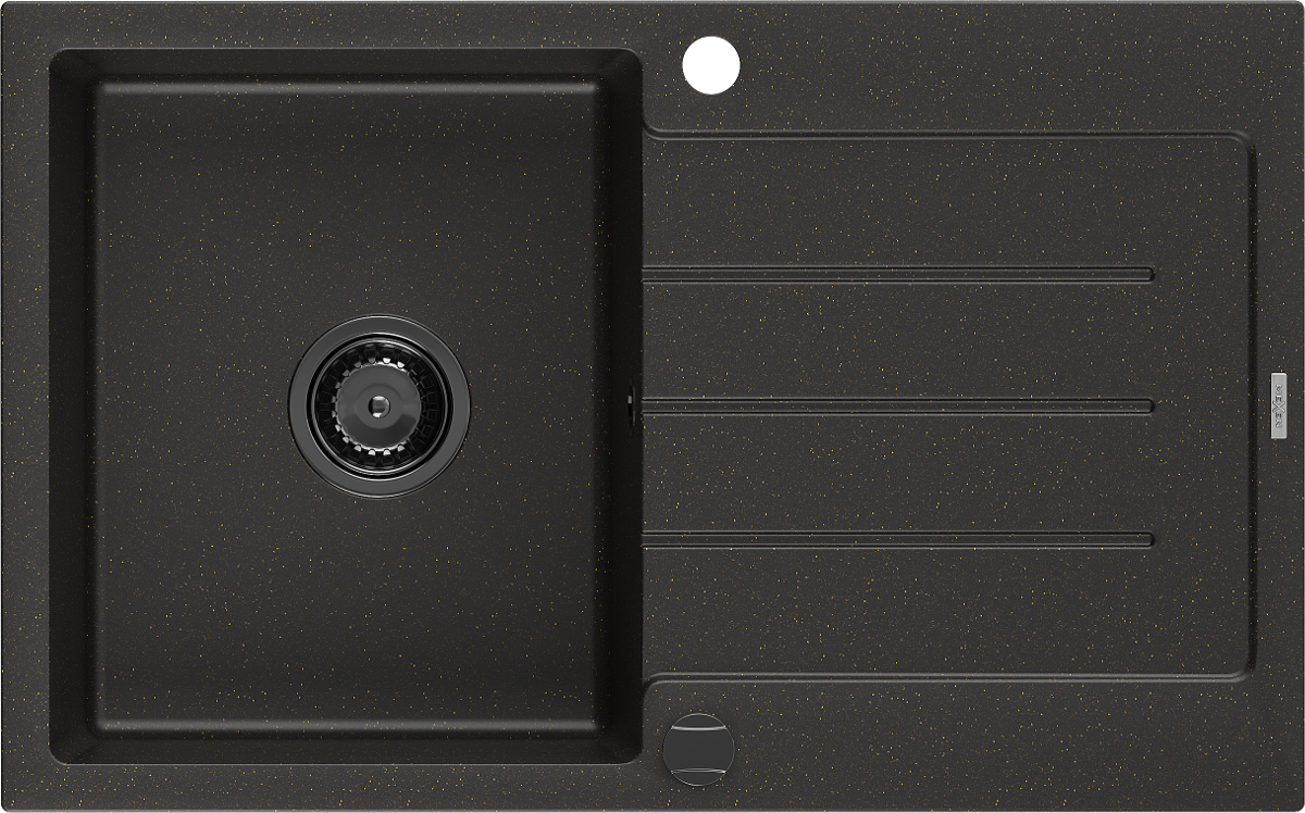 Mexen Bruno chiuvetă de bucătărie granit 1-cuptor cu scurgător 795 x 495 mm, negru/auriu metalic, sifon negru - 6513791010-75-B