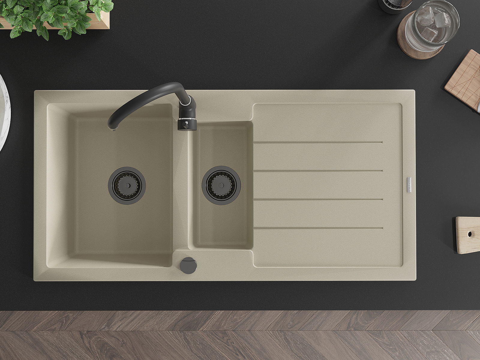 Suprafața chiuvetei este rezistentă la pete și decolorarea, datorită căreia este ușor de curățat și își păstrează culoarea mult timp. Estetică și practic completarea fiecărei bucătării.