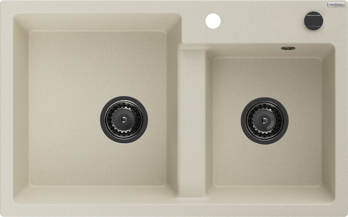 Mexen Tomas chiuvetă de granit cu 2 compartimente 800 x 500 mm, bej, sifon negru - 6516802000-69-B