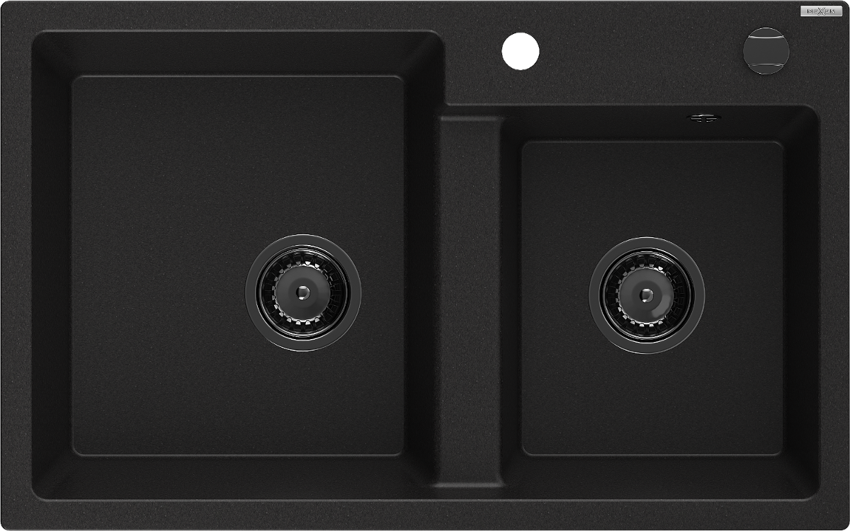 Mexen Tomas chiuvetă din granit cu 2 compartimente 800 x 500 mm, negru, sifon negru - 6516802000-77-B