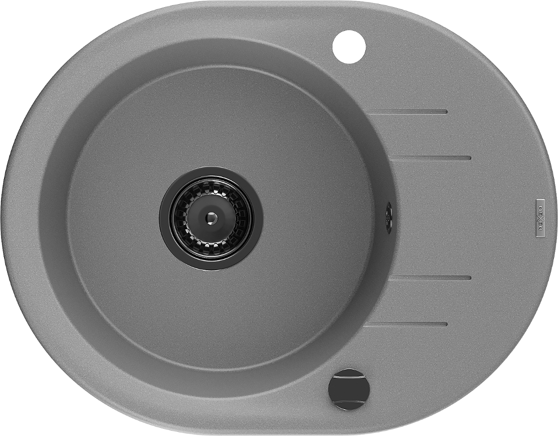 Mexen Kevin chiuvetă de granit cu 1 cuvă și scurgător 586 x 458 mm, gri, sifon negru - 6517581005-71-B