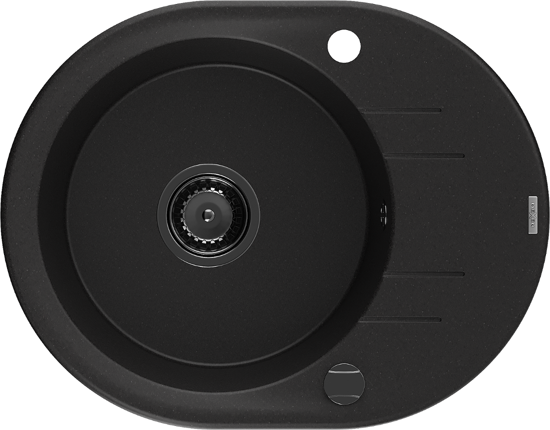 Mexen Kevin chiuvetă de granit cu o cuvă și scurgător 586 x 458 mm, negru, sifon negru - 6517581005-77-B