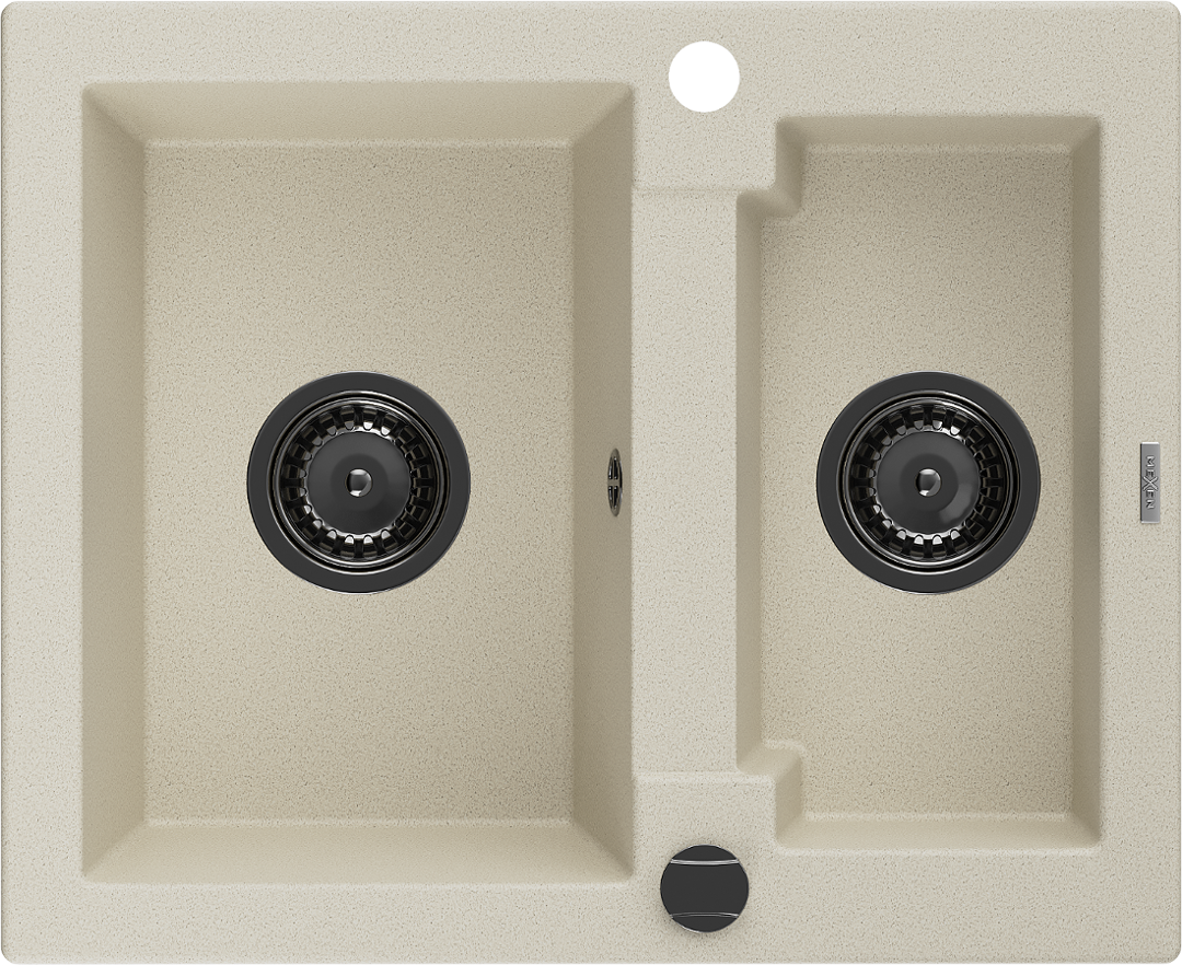 Mexen Carlos chiuvetă din granit cu 1,5 compartimente 582 x 475 mm, bej, sifon negru - 6518581500-69-B