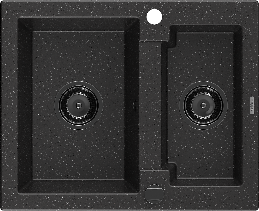 Mexen Carlos chiuvetă granit 1,5 compartimente 582 x 475 mm, negru/argintiu metalic, sifon negru - 6518581500-73-B