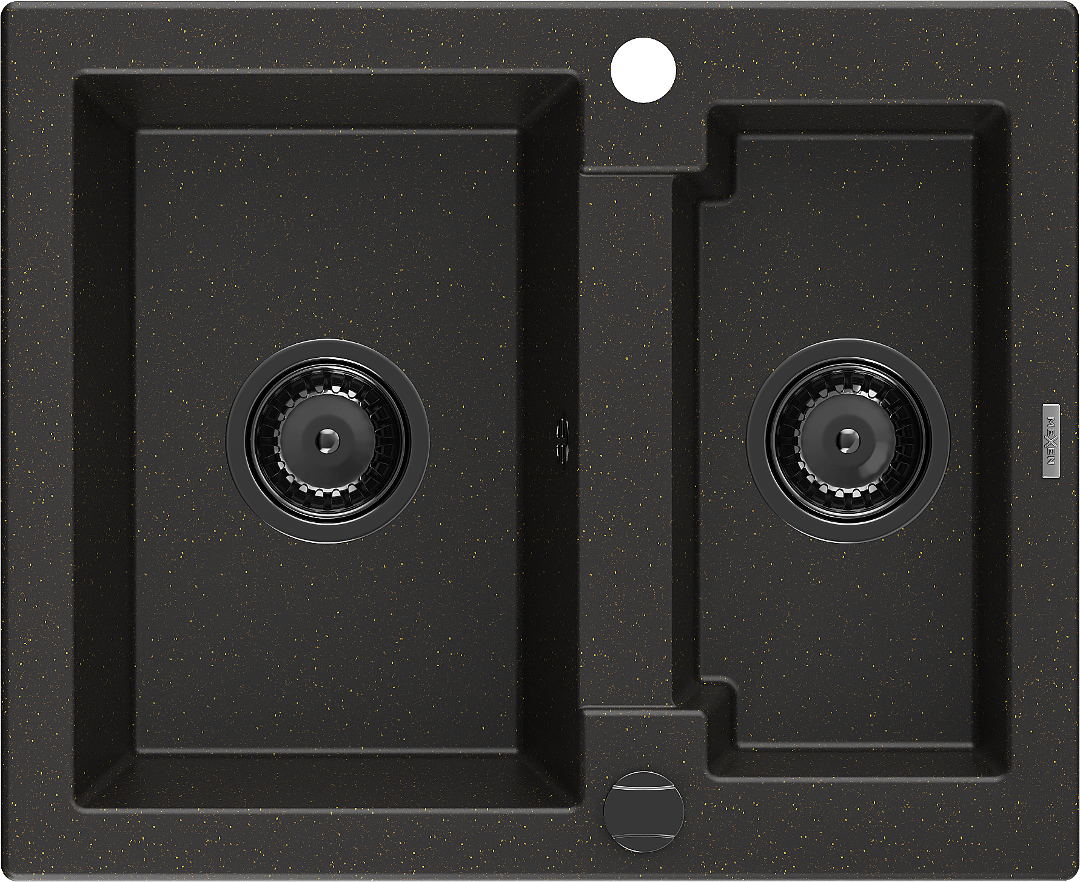 Mexen Carlos chiuvetă de granit cu 1,5 cuve 582 x 475 mm, negru/auriu metalizat, sifon negru - 6518581500-75-B