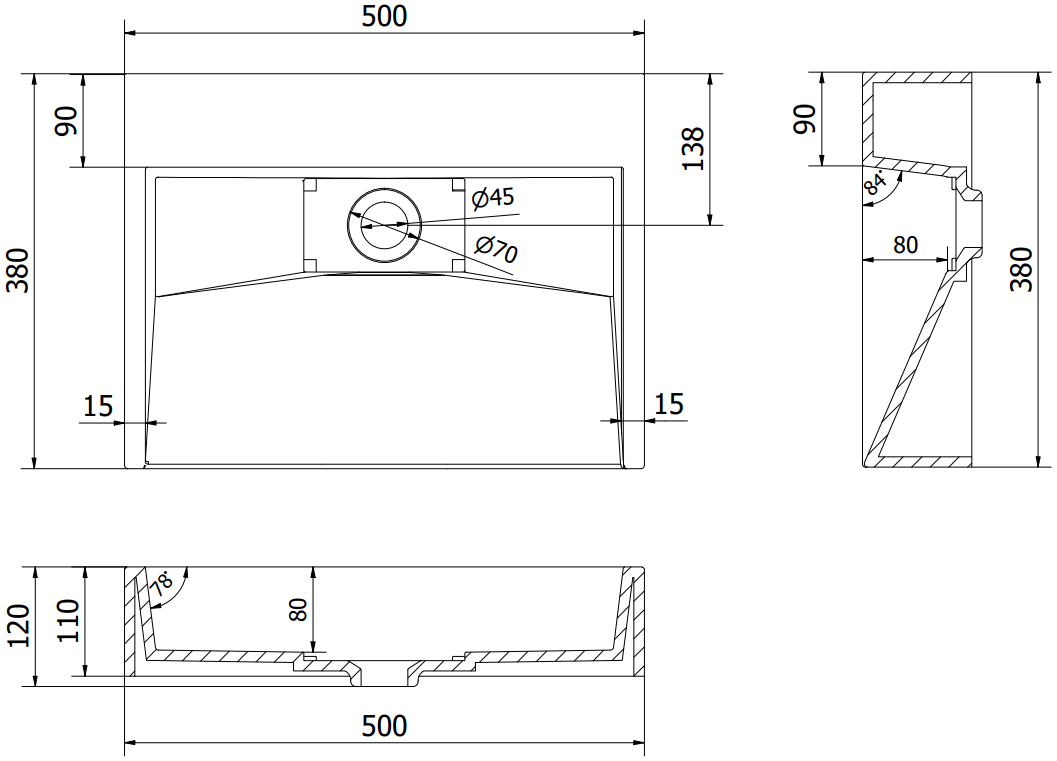 Mexen Ava lavoar pe blat din conglomerat B/O 50 x 38 cm, alb - 23015000