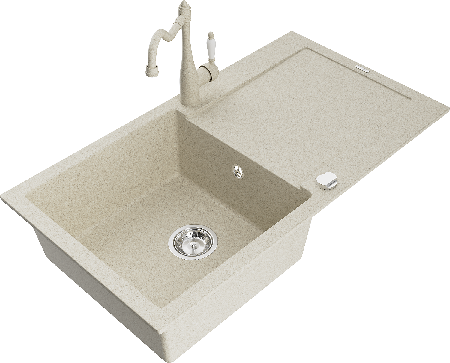 Suprafața chiuvetei este rezistentă la pete și decolorarea, datorită căreia este ușor de curățat și își păstrează culoarea mult timp. Estetică și practic completarea fiecărei bucătării.