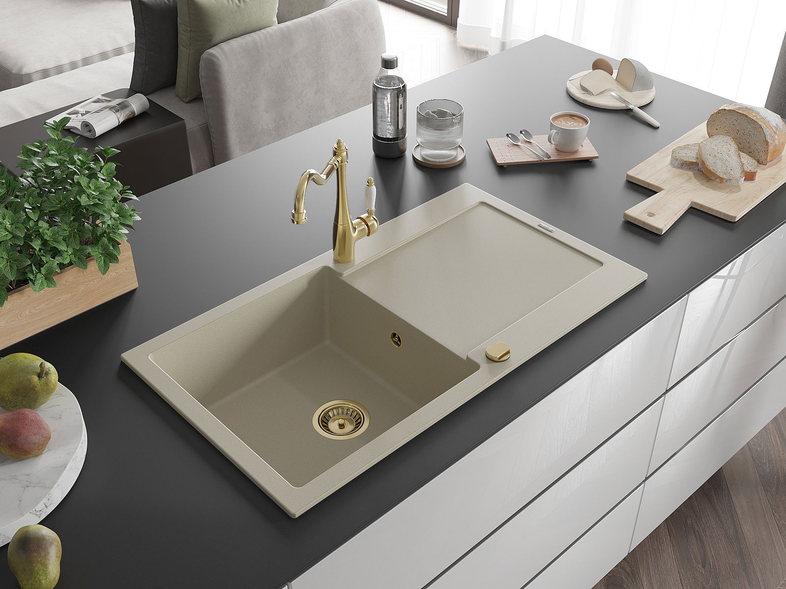 Suprafața chiuvetei este rezistentă la pete și decolorarea, datorită căreia este ușor de curățat și își păstrează culoarea mult timp. Estetică și practic completarea fiecărei bucătării.