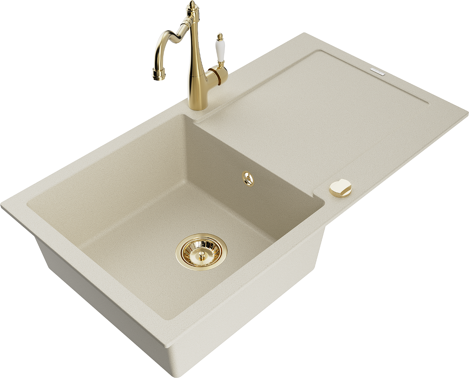 Mexen Leo chiuvetă de bucătărie din granit cu 1 compartiment și picurător și baterie de bucătărie Carla, bej - 6501-69-670700-5?