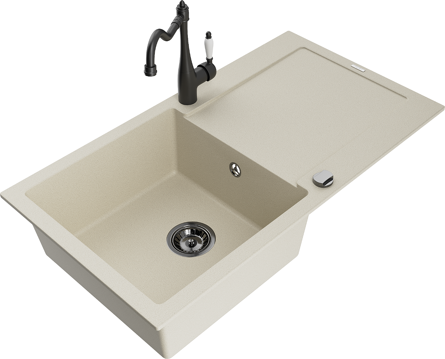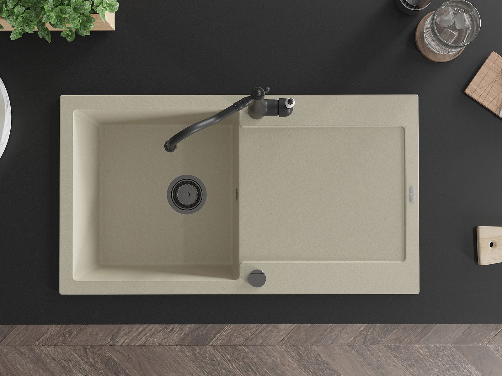 Suprafața chiuvetei este rezistentă la pete și decolorarea, datorită căreia este ușor de curățat și își păstrează culoarea mult timp. Estetică și practic completarea fiecărei bucătării.