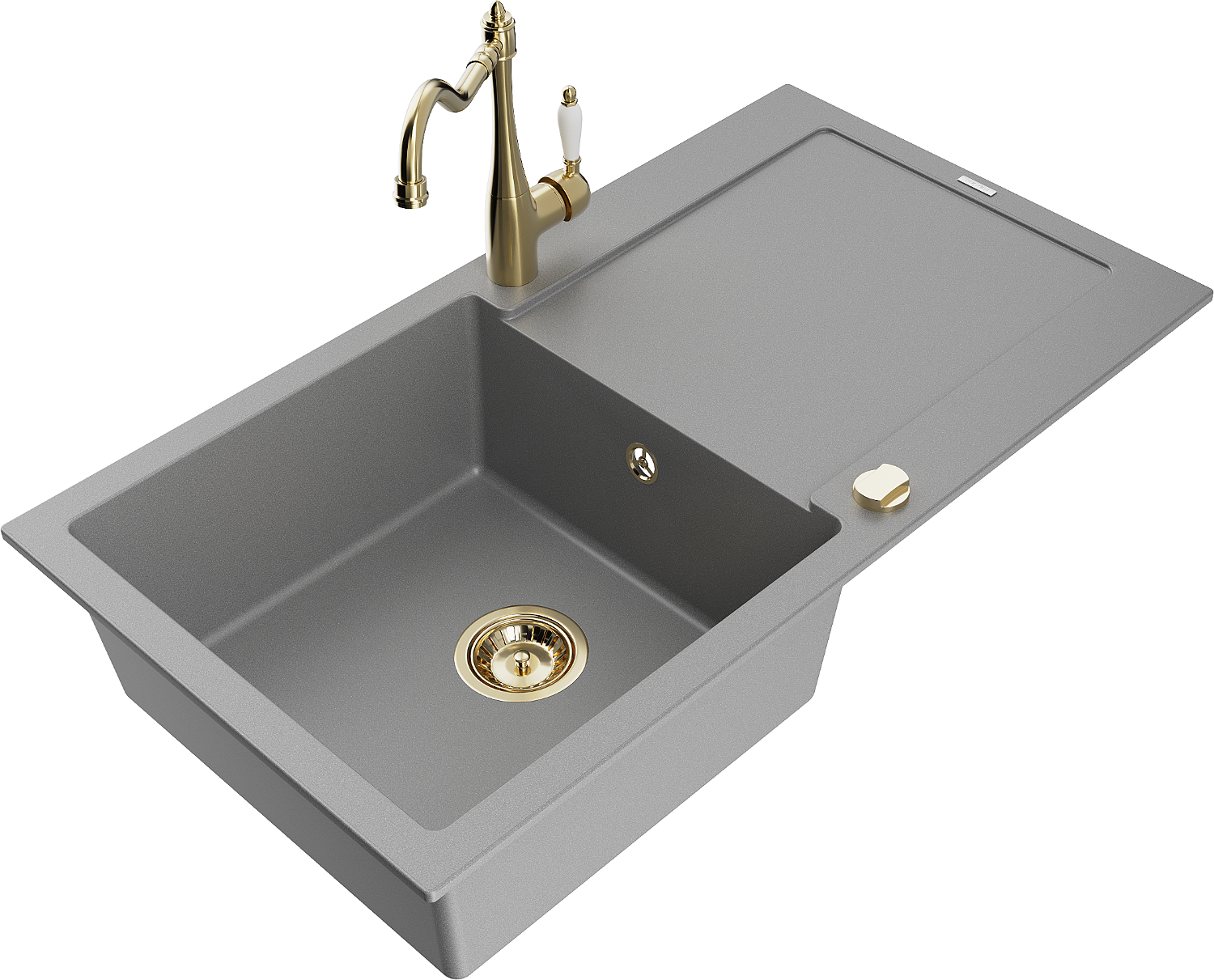 Mexen Leo chiuvetă de granit cu 1 compartiment cu scurgător și baterie de bucătărie Carla, gri - 6501-71-670700-50