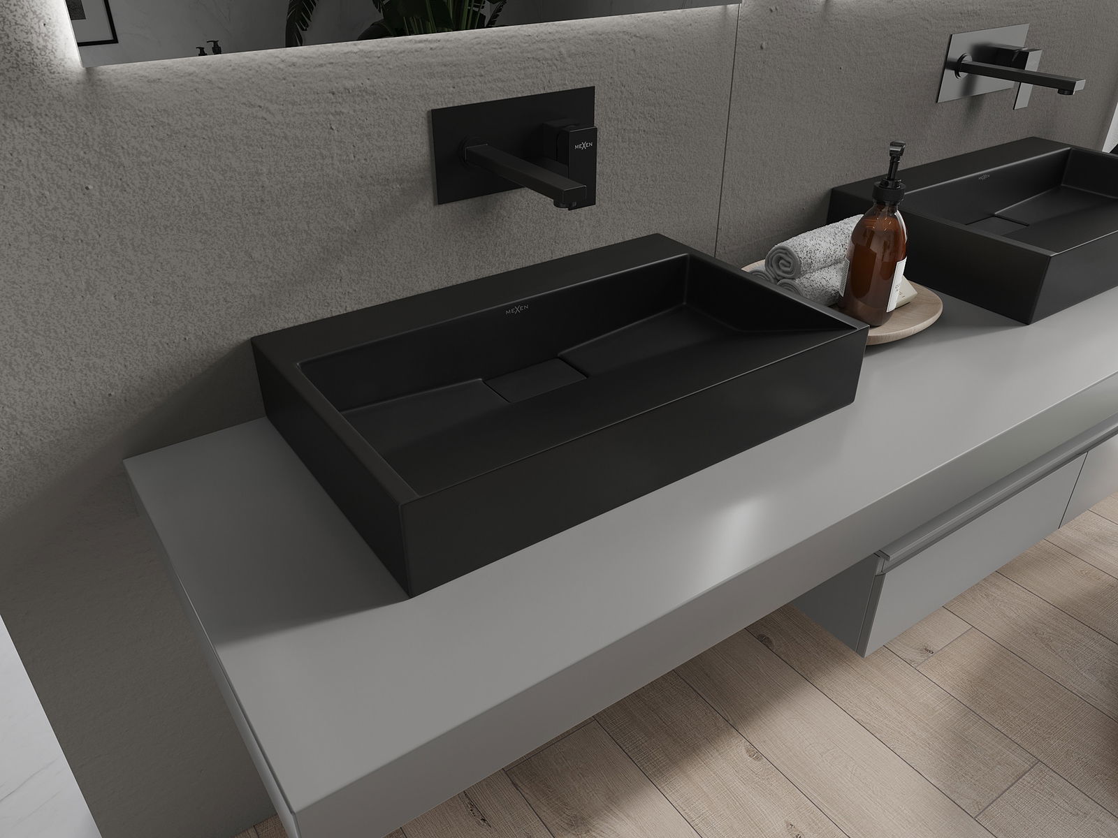 Mexen Ava este o chiuvetă de blat elegantă, cu dimensiunile de 60 x 38 cm, creată dintr-un conglomerat durabil de culoare neagră. Datorită formei sale dreptunghiulare, adaugă un caracter modern oricărei băi. Dispune de un strat protector durabil și un finisaj lucios, ceea ce asigură o curățare ușoară și un aspect elegant. Lipsa orificiilor pentru baterii și a preaplinului o face o soluție ideală pentru amenajările minimaliste. Înălțimea de 11 cm și adâncimea de 8 cm o fac funcțională și estetică.