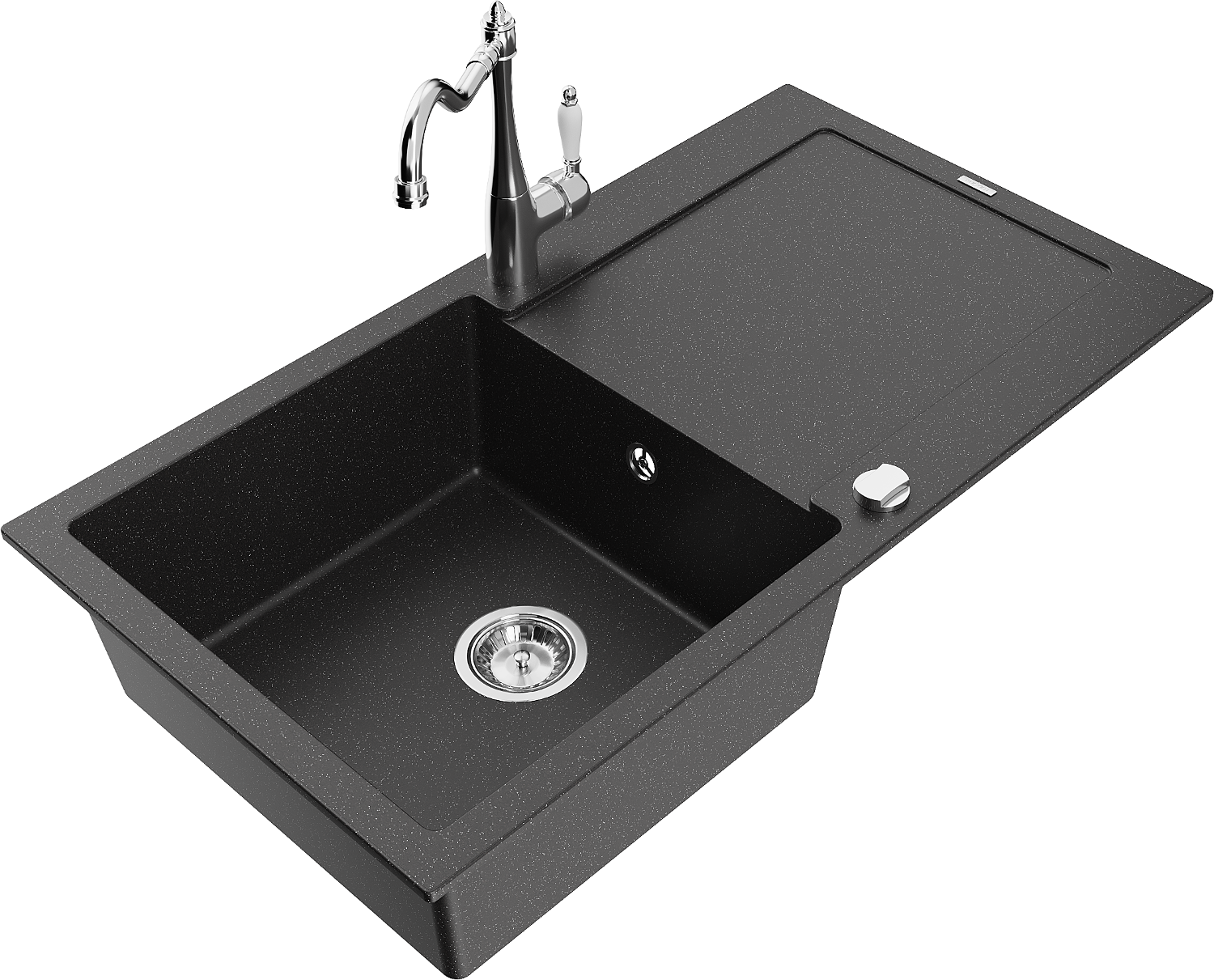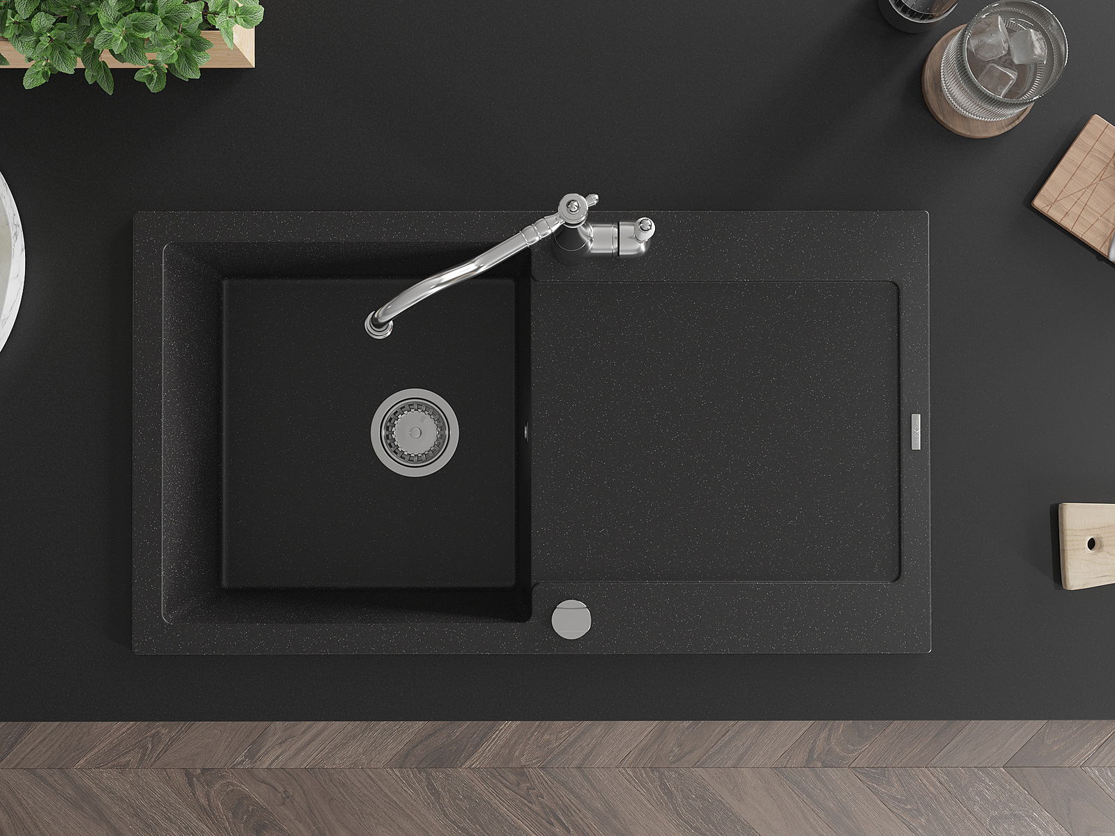 Mexen Leo chiuvetă de granit cu 1 compartiment cu scurgător și baterie de bucătărie Carla, negru/argintiu metalizat - 6501-73-6?