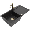 Mexen Leo chiuvetă din granit, cu o cuvă și scurgător, și baterie de bucătărie Carla, negru/auriu metalic - 6501-75-670700-50-B