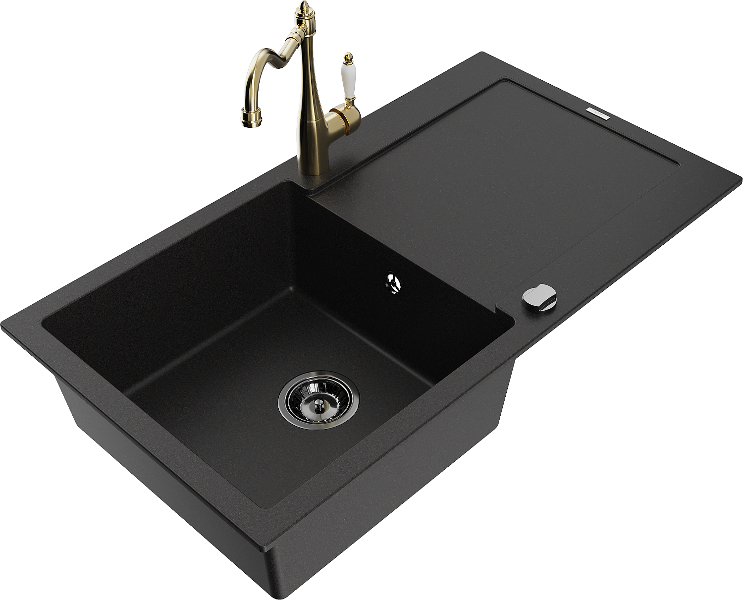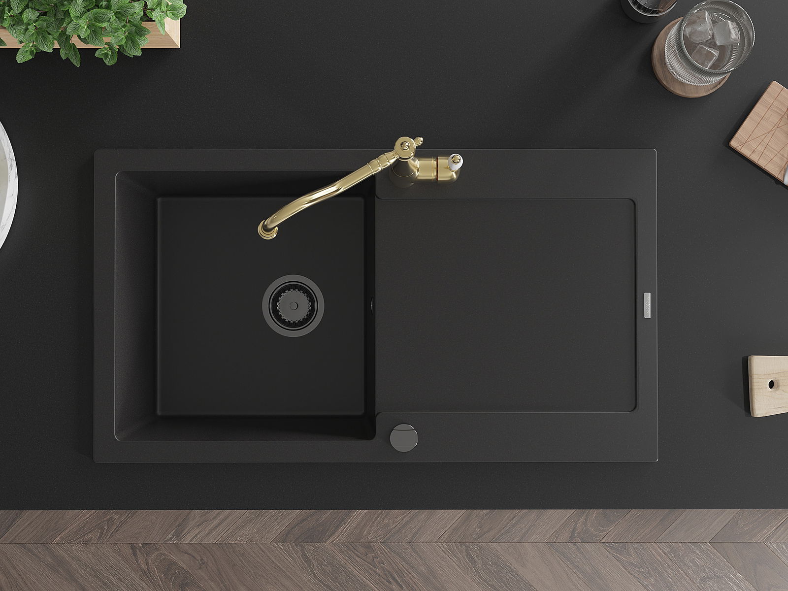Mexen Leo chiuvetă din granit cu 1 compartiment și picurător și baterie de bucătărie Carla, negru - 6501-77-670700-50-B