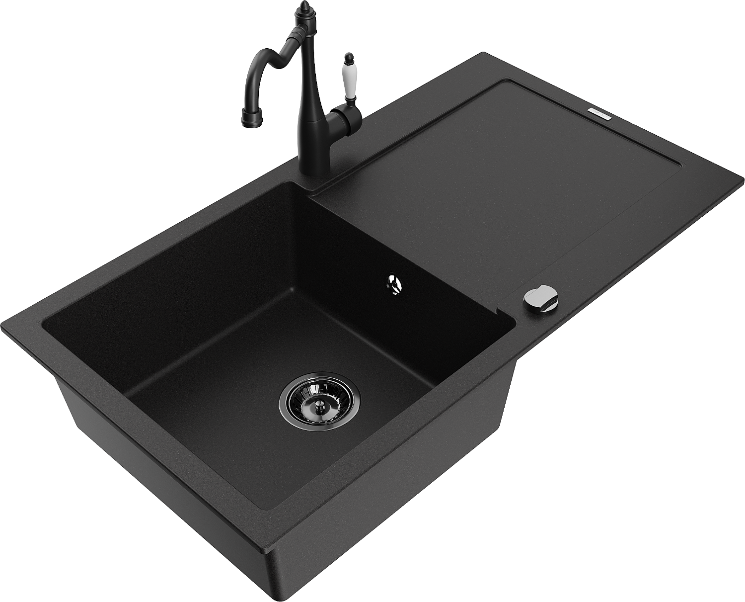 Mexen Leo chiuvetă de granit cu o singură cuvă și scurgător și baterie de bucătărie Carla, negru - 6501-77-670700-70-B