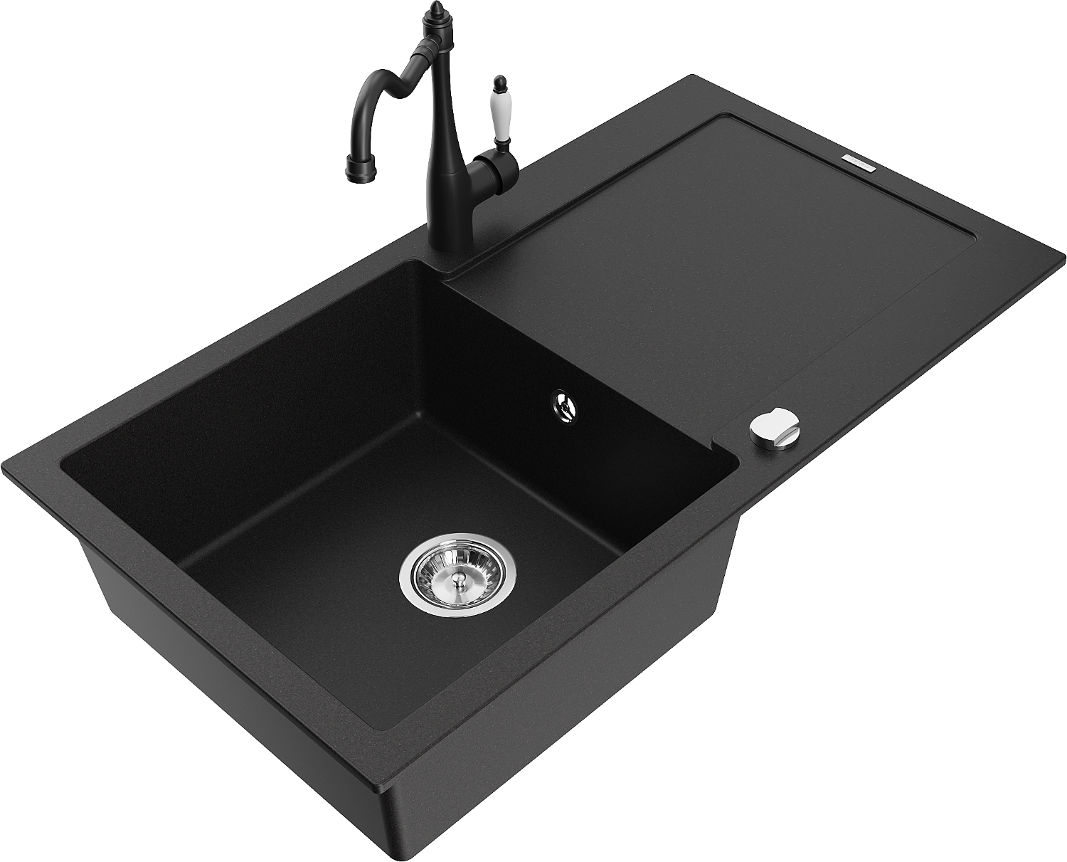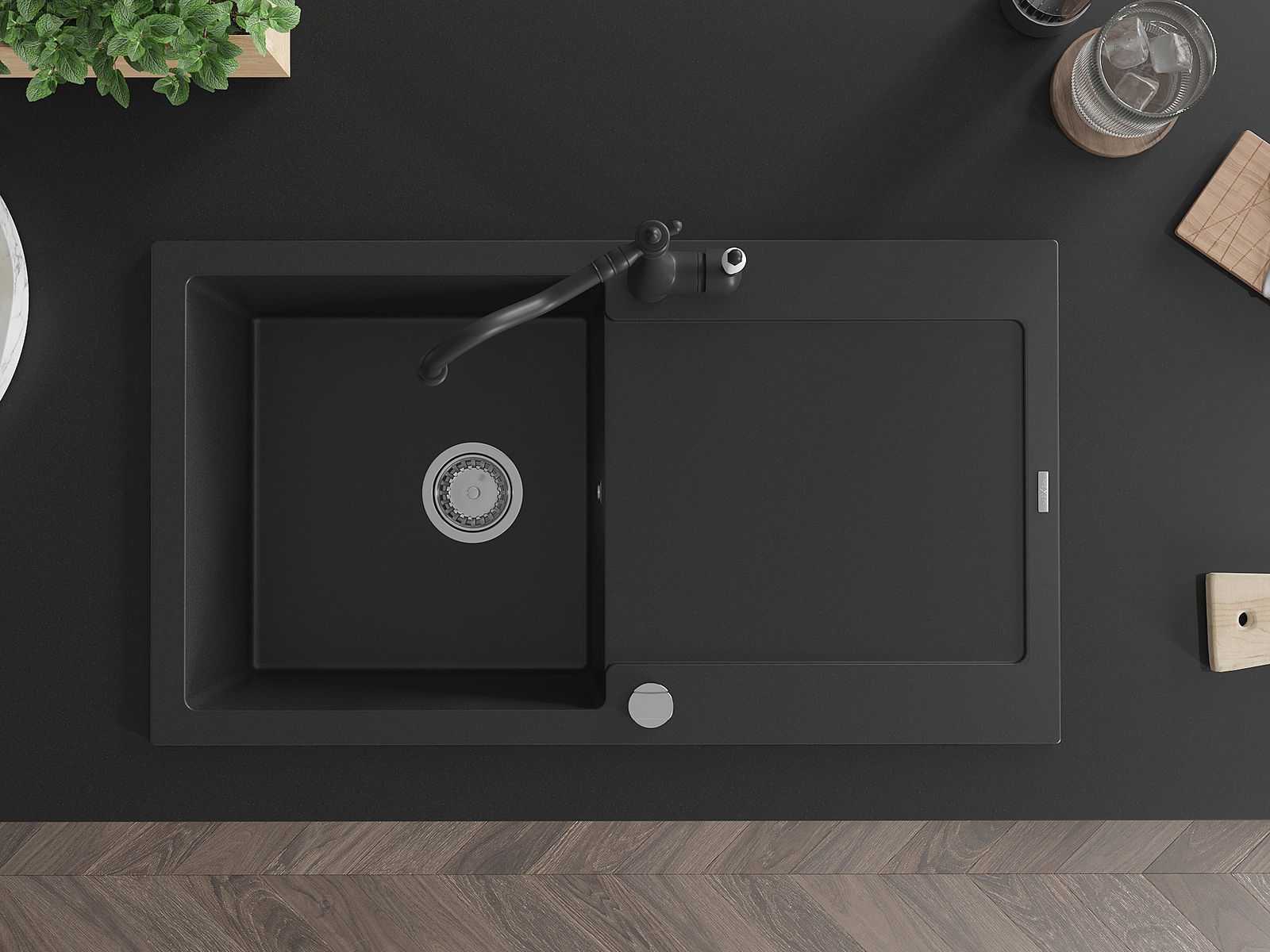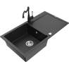 Mexen Leo chiuvetă de bucătărie din granit cu 1 compartiment, cu scurgător și robinet Carla, negru - 6501-77-670700-70