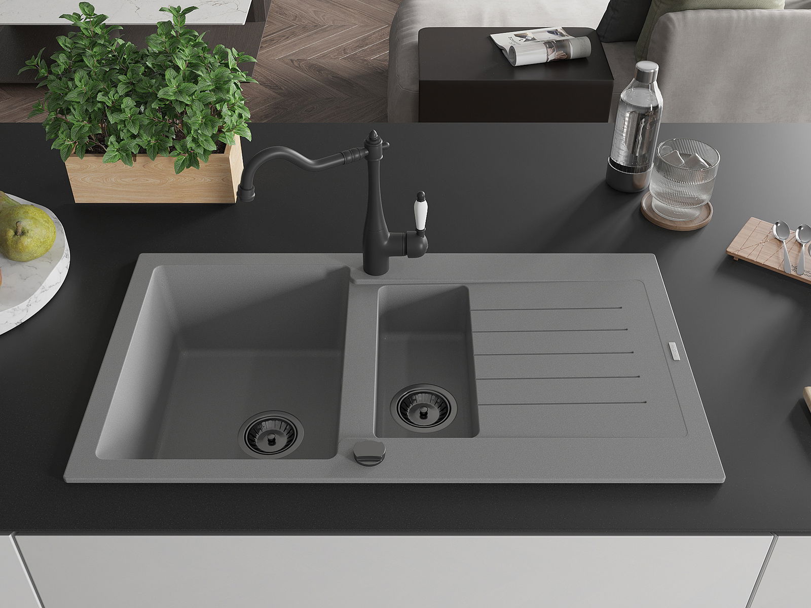 Chiuveta este confecționată din granit de înaltă calitate. Este un complement elegant și, mai ales, practic pentru fiecare bucătărie, indiferent de stilul său. Durabilitatea de înaltă calitate și granit asigură mulți ani de utilizare.