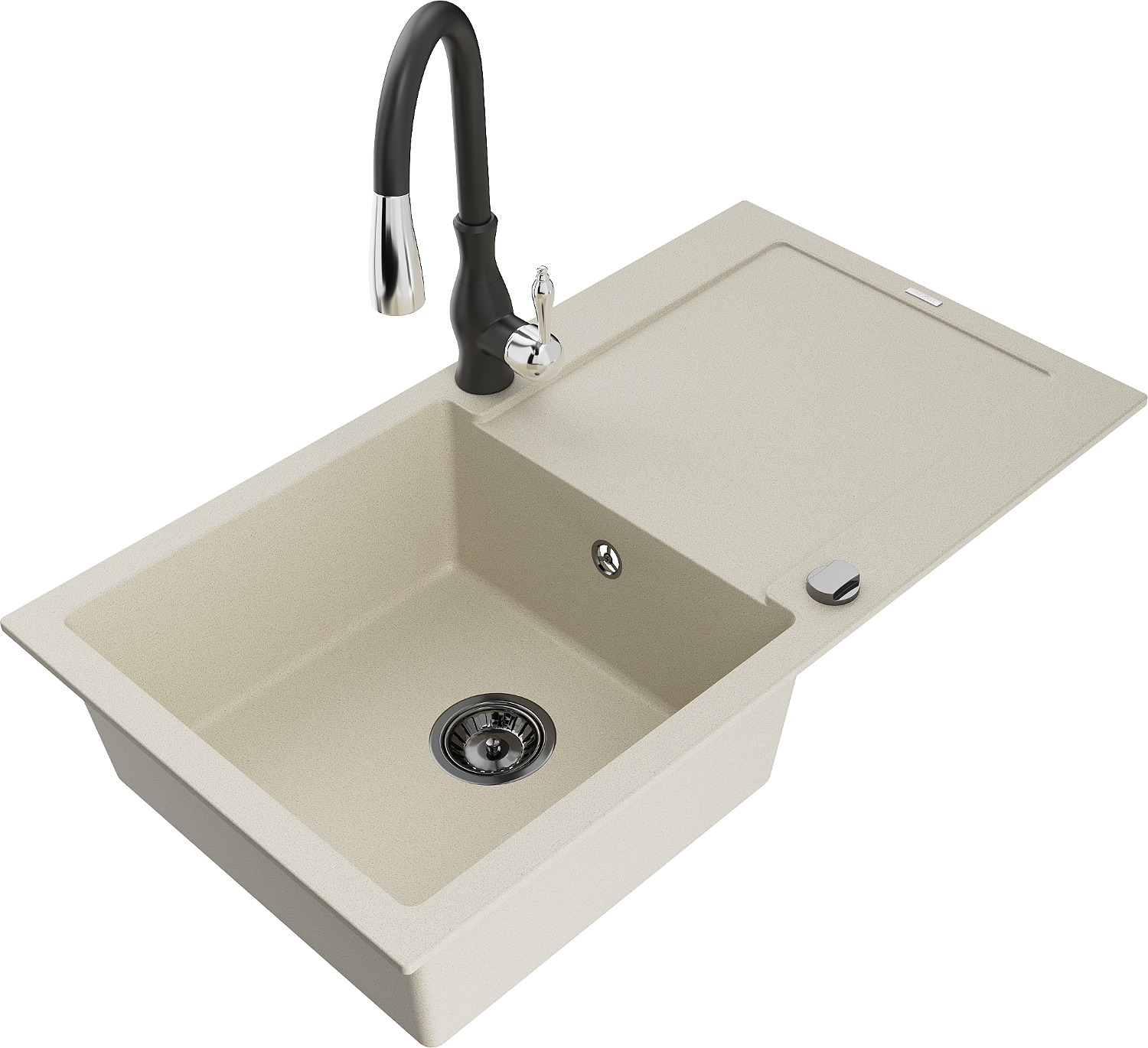 Suprafața chiuvetei este rezistentă la pete și decolorarea, datorită căreia este ușor de curățat și își păstrează culoarea mult timp. Estetică și practic completarea fiecărei bucătării.