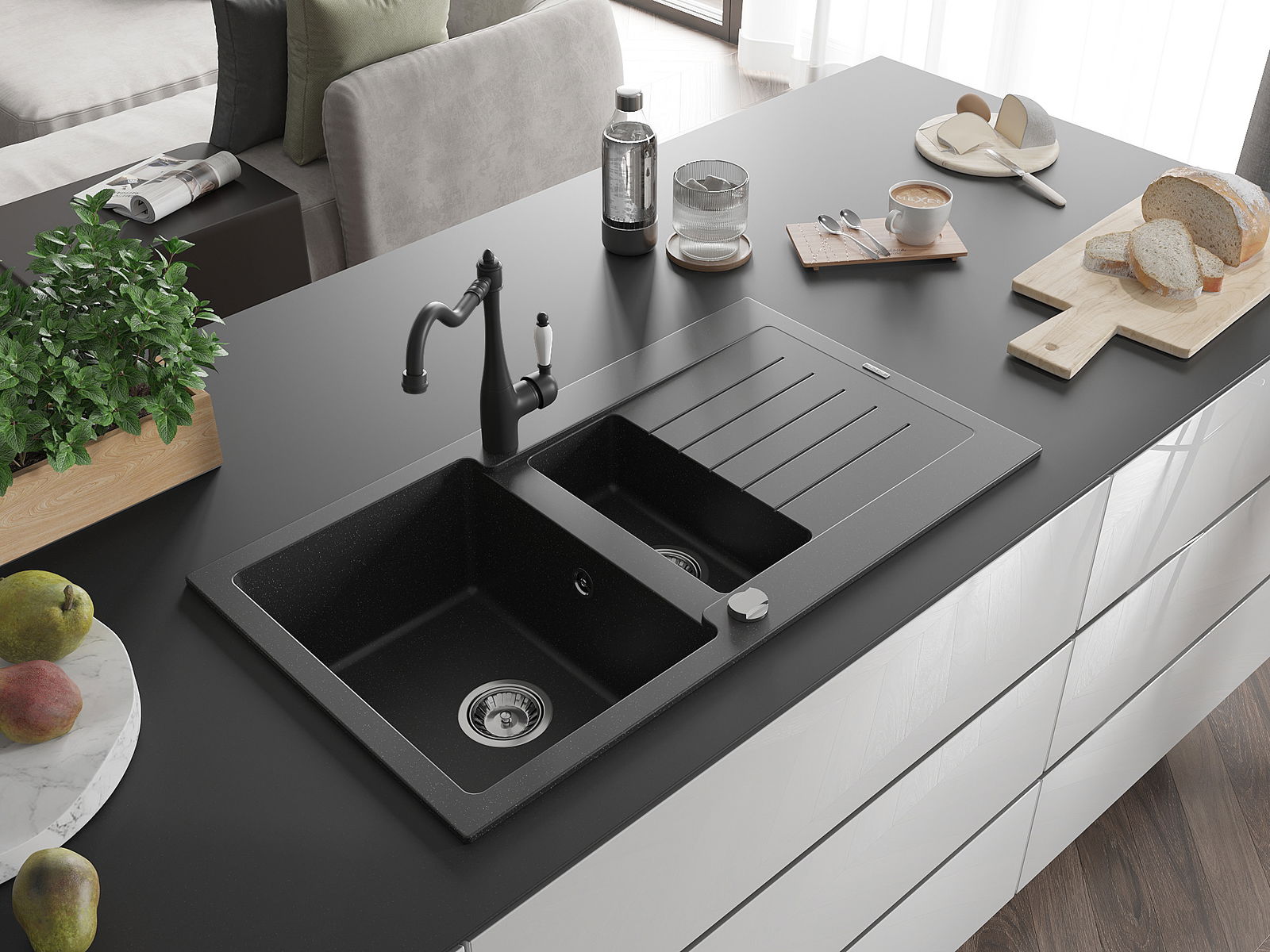 Chiuveta a fost realizată din granit de înaltă calitate. Reprezintă un complement elegant și, mai presus de toate, practic pentru orice bucătărie, indiferent de stilul acesteia. Calitatea înaltă și durabilitatea granitului asigură o utilizare de lungă durată.