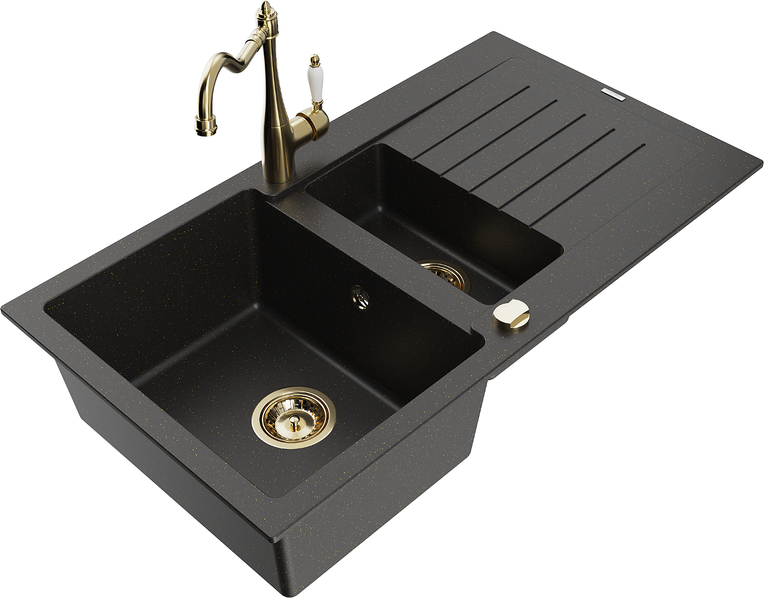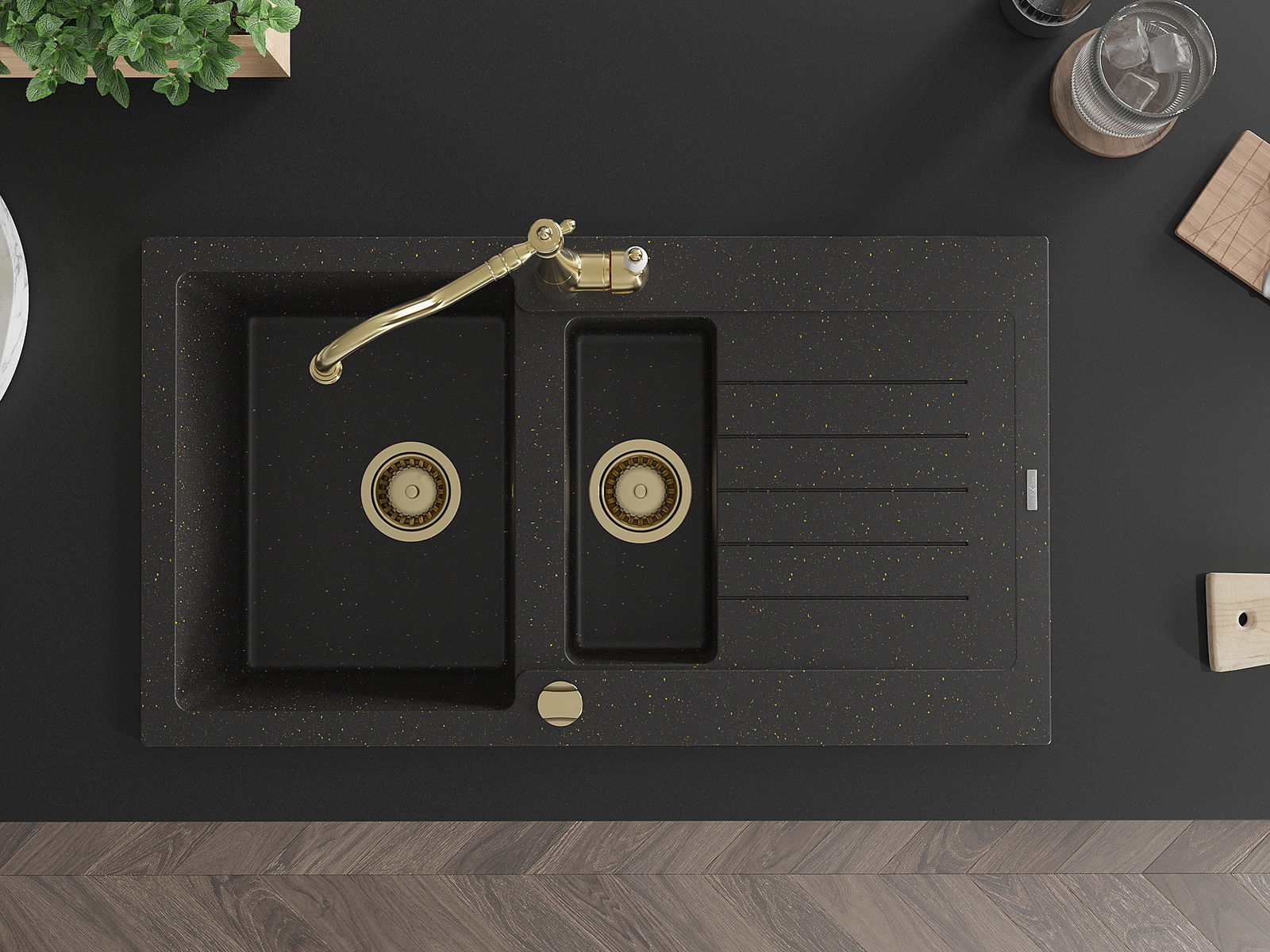 Mexen Matias chiuvetă de bucătărie din granit cu 1,5 compartimente și scurgător, cu baterie de bucătărie Carla,
