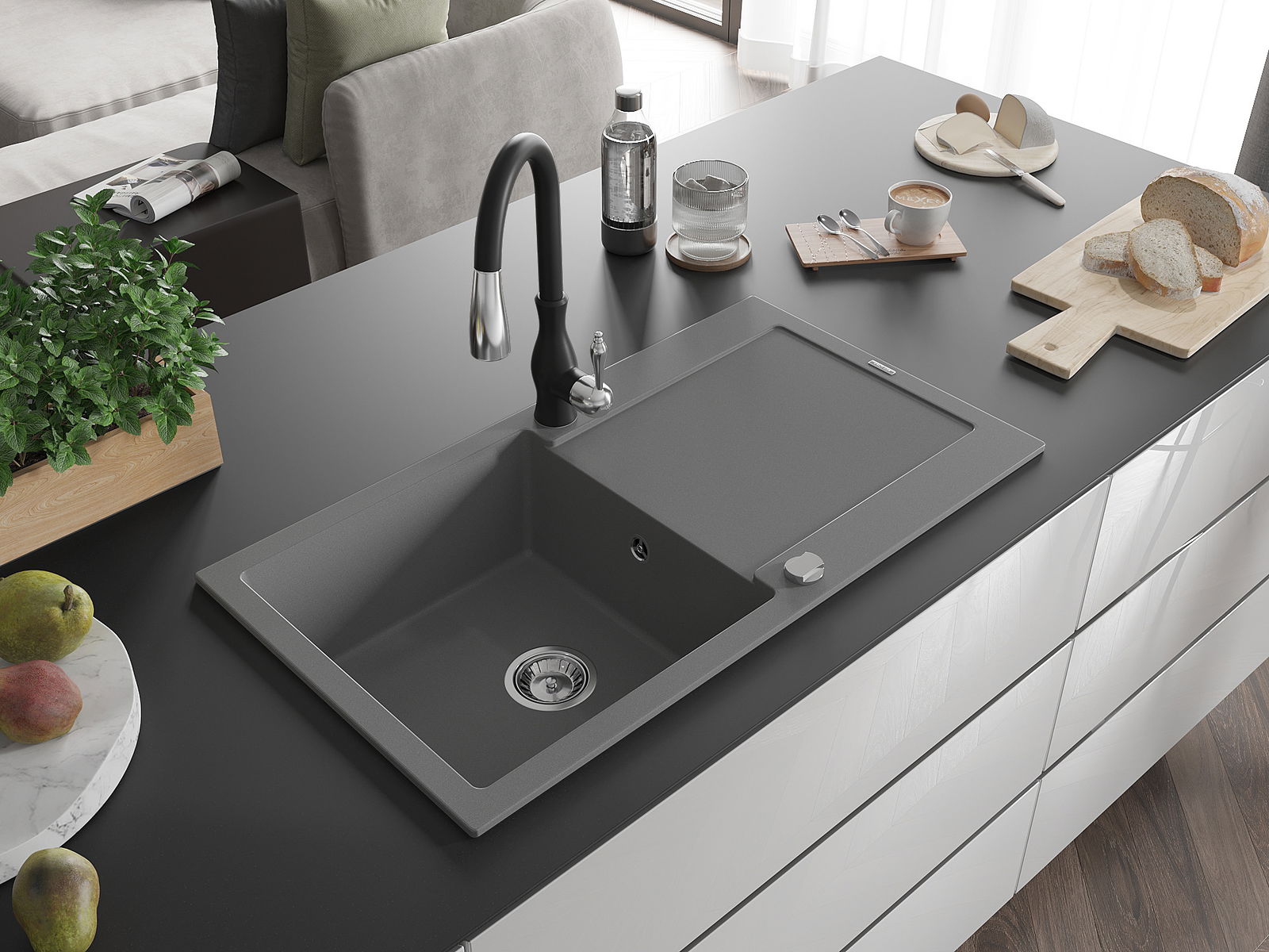 Chiuveta a fost realizată din granit de înaltă calitate. Reprezintă un complement elegant și, mai presus de toate, practic pentru orice bucătărie, indiferent de stilul acesteia. Calitatea înaltă și durabilitatea granitului asigură o utilizare de lungă durată.