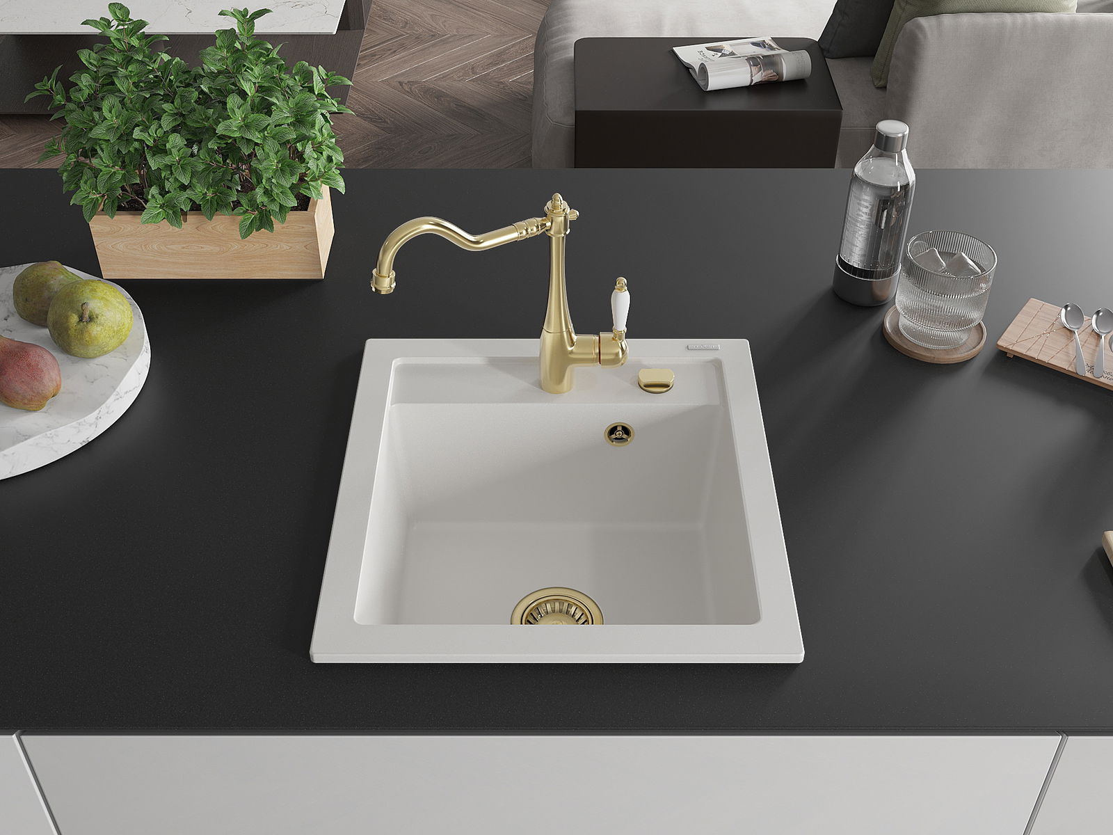 Suprafața chiuvetei este rezistentă la pete și decolorarea, datorită căreia este ușor de curățat și își păstrează culoarea mult timp. Estetică și practic completarea fiecărei bucătării.
