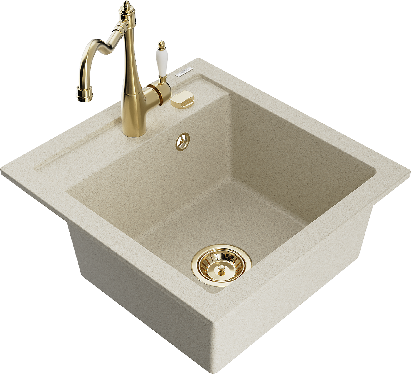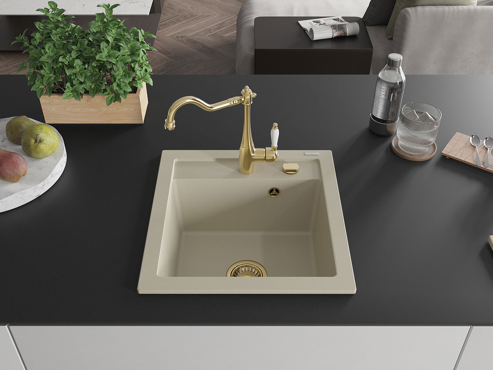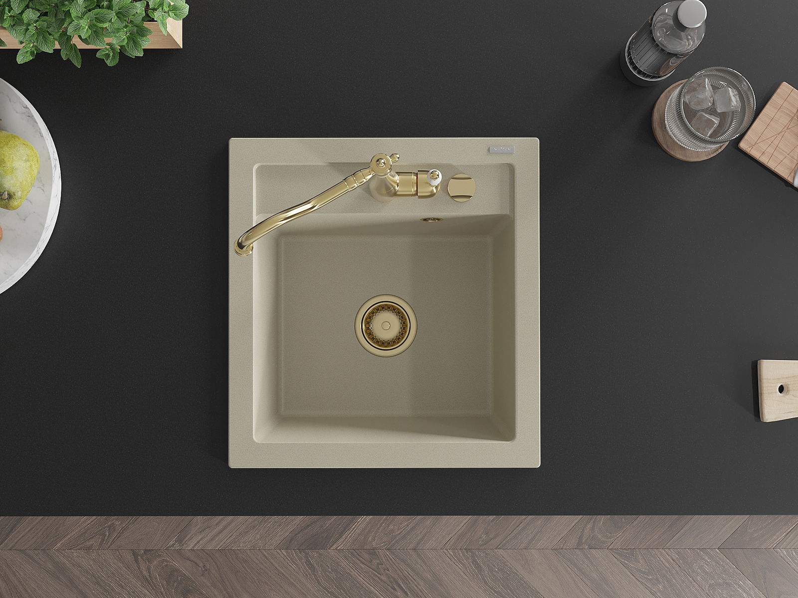 Mexen Vito chiuvetă de bucătărie din granit cu 1 compartiment cu baterie de bucătărie Carla, bej - 6503-69-670700-50