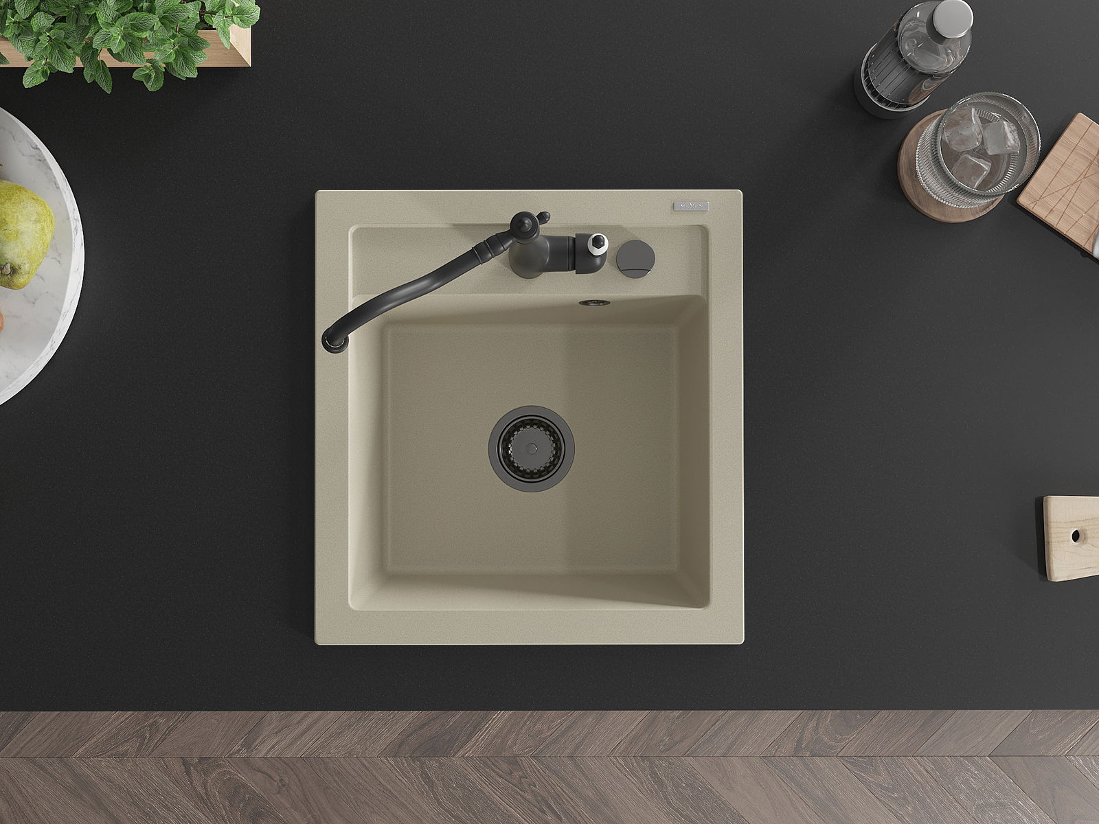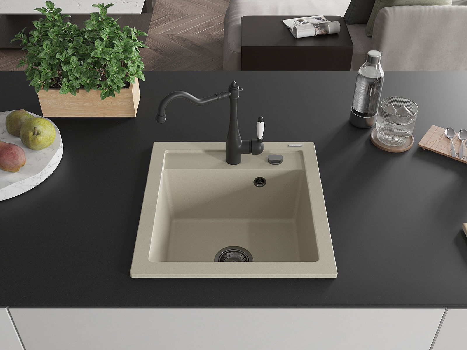 Suprafața chiuvetei este rezistentă la pete și decolorarea, datorită căreia este ușor de curățat și își păstrează culoarea mult timp. Estetică și practic completarea fiecărei bucătării.