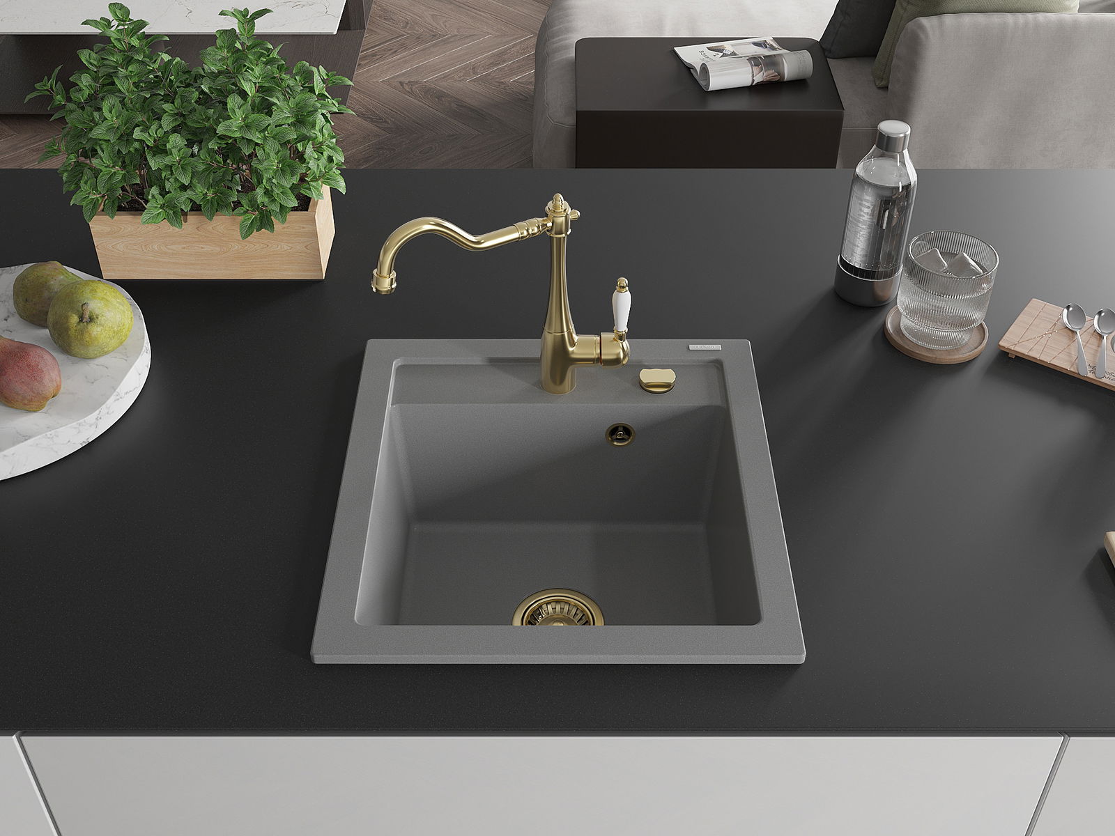 Mexen Vito chiuvetă din granit cu 1 compartiment și baterie de bucătărie Carla, gri - 6503-71-670700-50