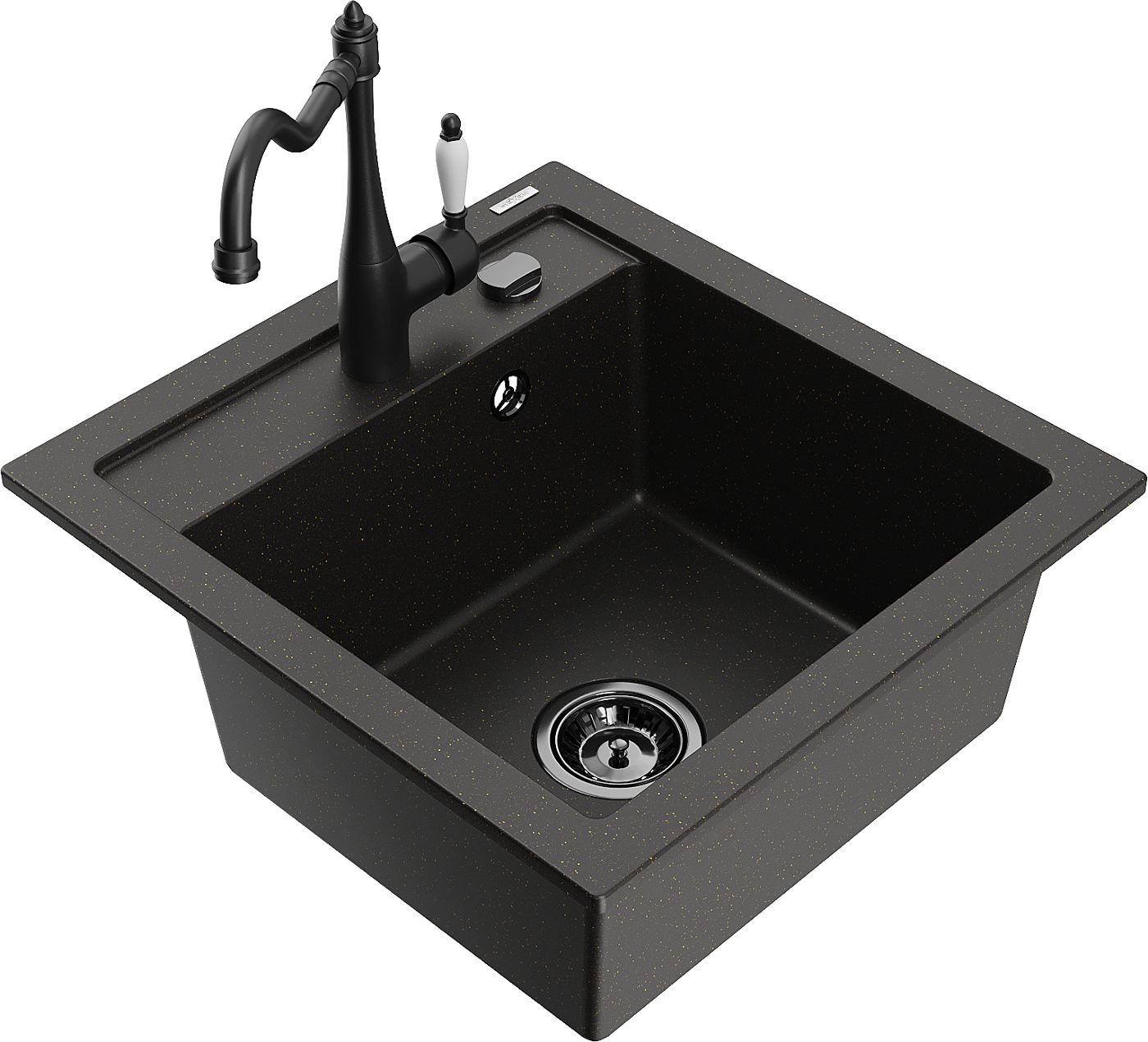 Mexen Vito chiuvetă de granit cu 1 compartiment cu baterie de bucătărie Carla, negru/auriu metalic - 6503-75-670700-70-B