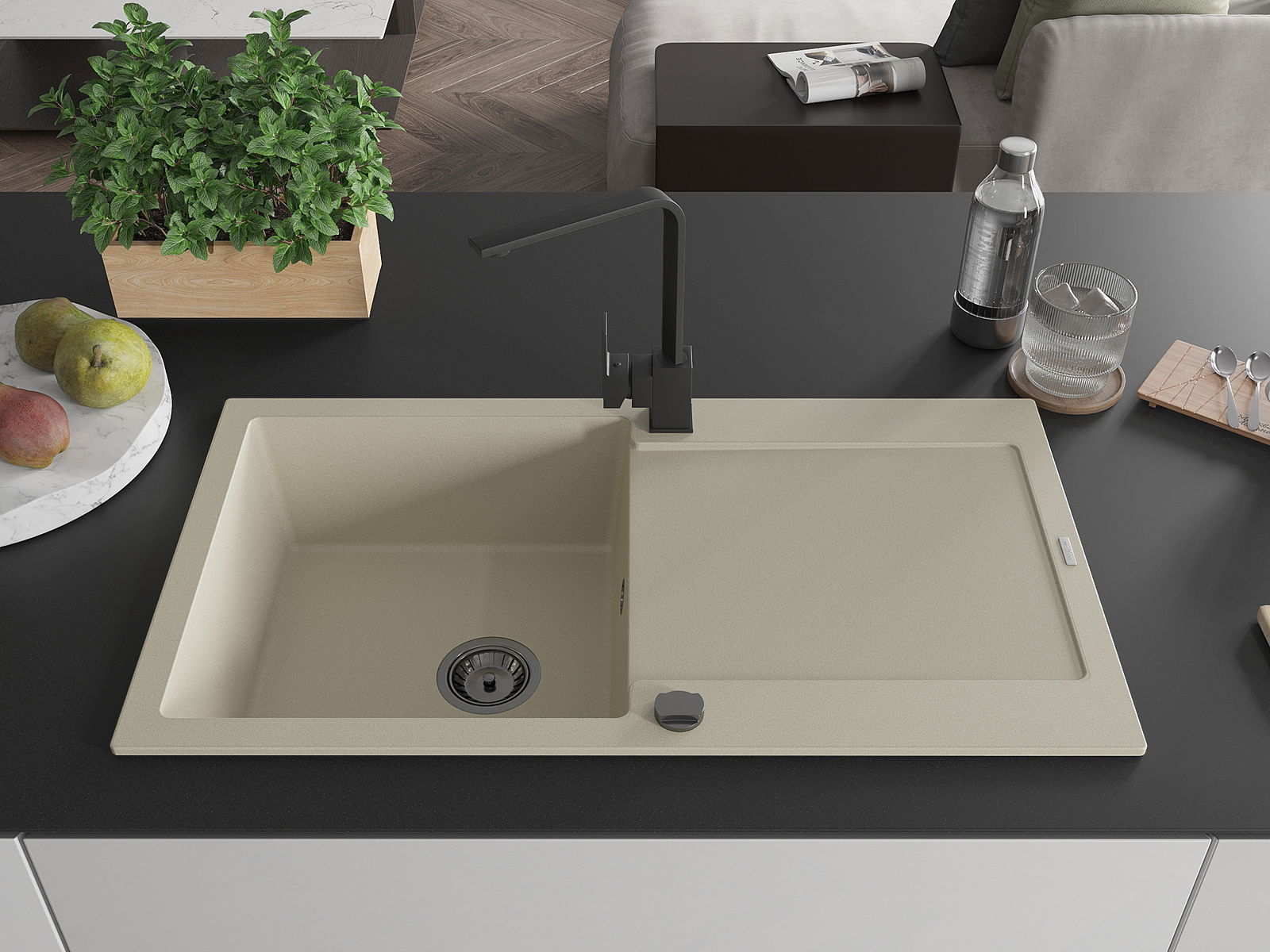 Chiuveta a fost realizată din granit de înaltă calitate. Reprezintă un complement elegant și, mai presus de toate, practic pentru orice bucătărie, indiferent de stilul acesteia. Calitatea înaltă și durabilitatea granitului asigură o utilizare de lungă durată.