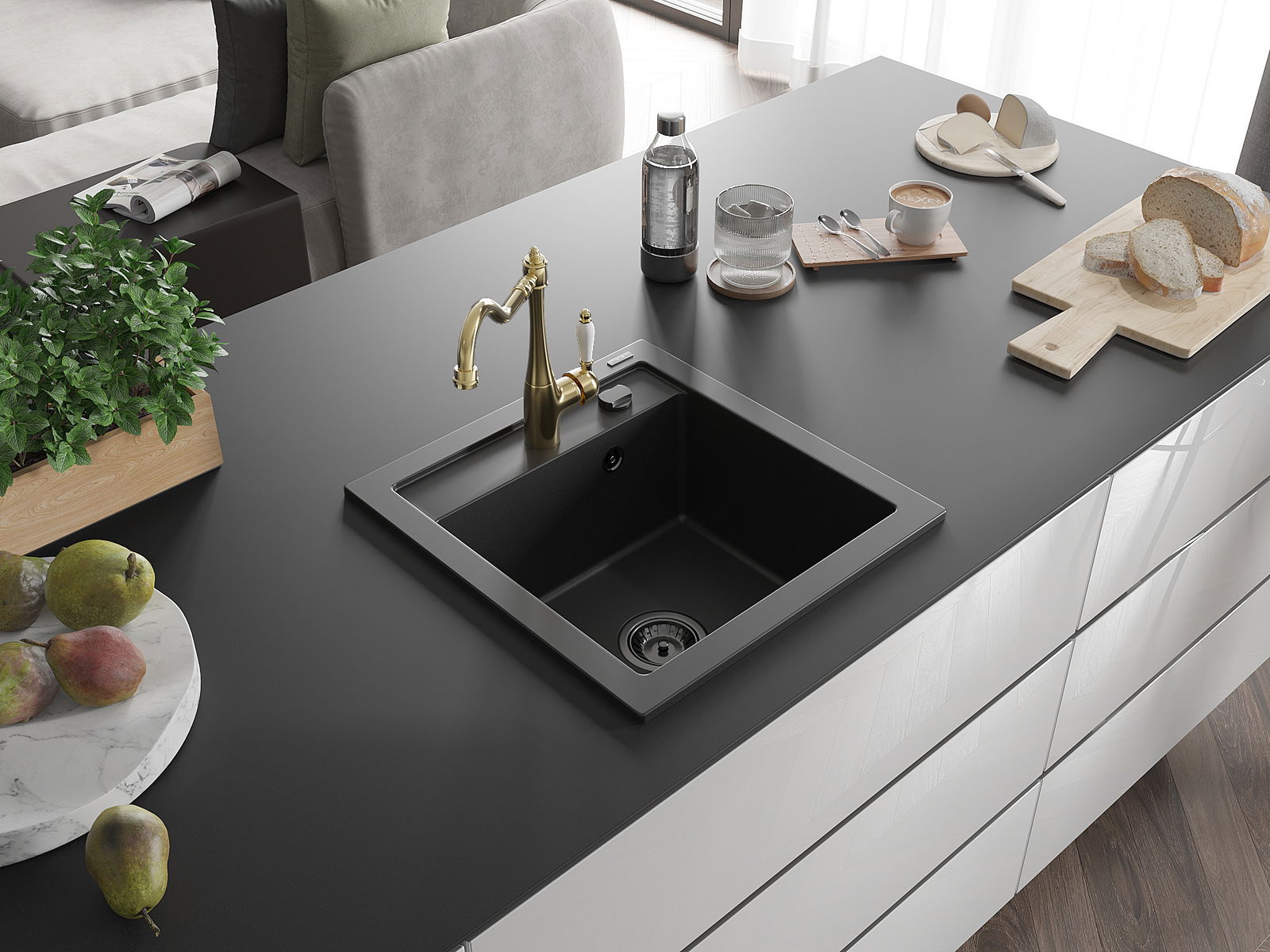Suprafața chiuvetei este rezistentă la pete și decolorarea, datorită căreia este ușor de curățat și își păstrează culoarea mult timp. Estetică și practic completarea fiecărei bucătării.