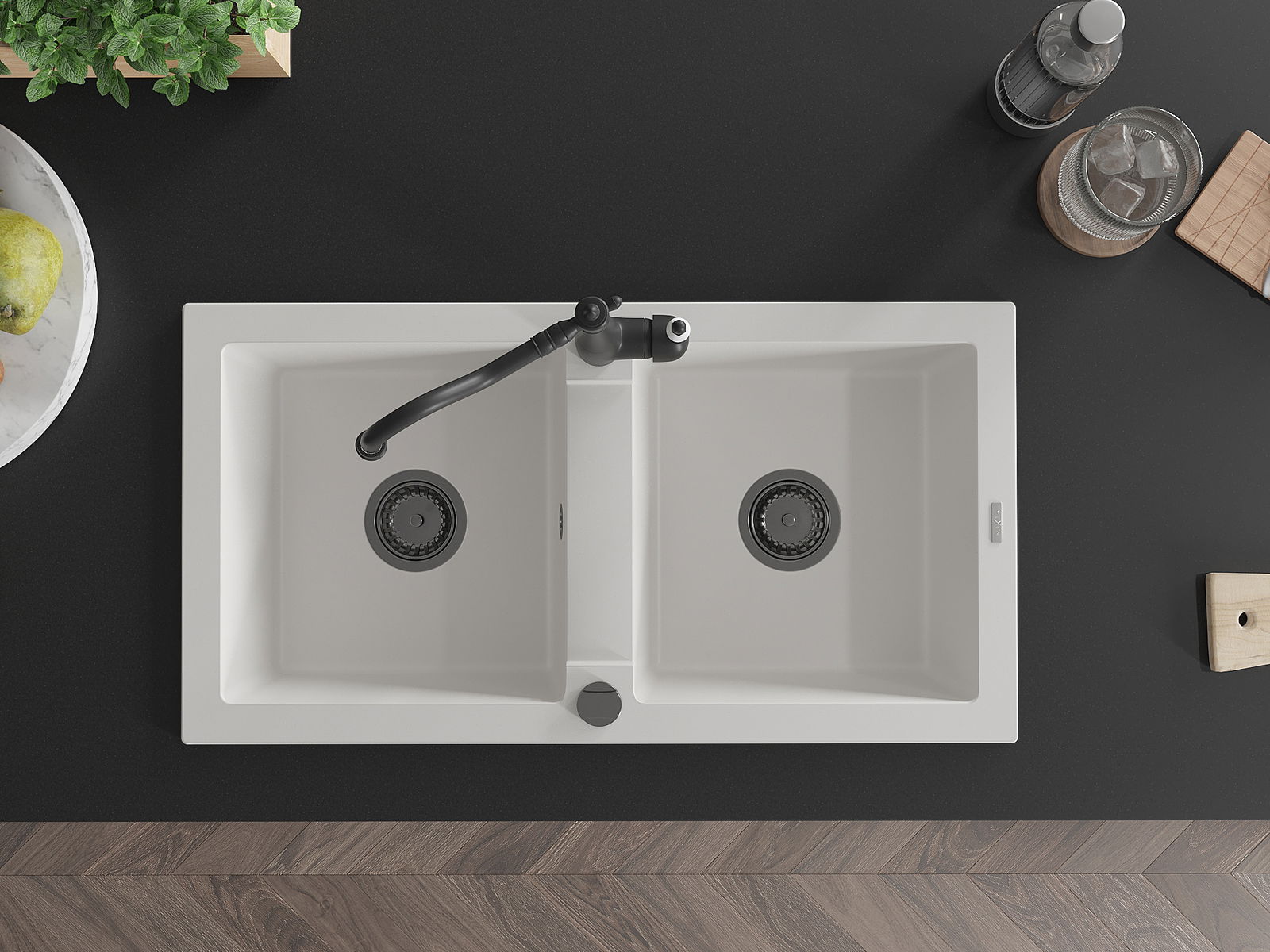 Suprafața chiuvetei este rezistentă la pete și decolorarea, datorită căreia este ușor de curățat și își păstrează culoarea mult timp. Estetică și practic completarea fiecărei bucătării.