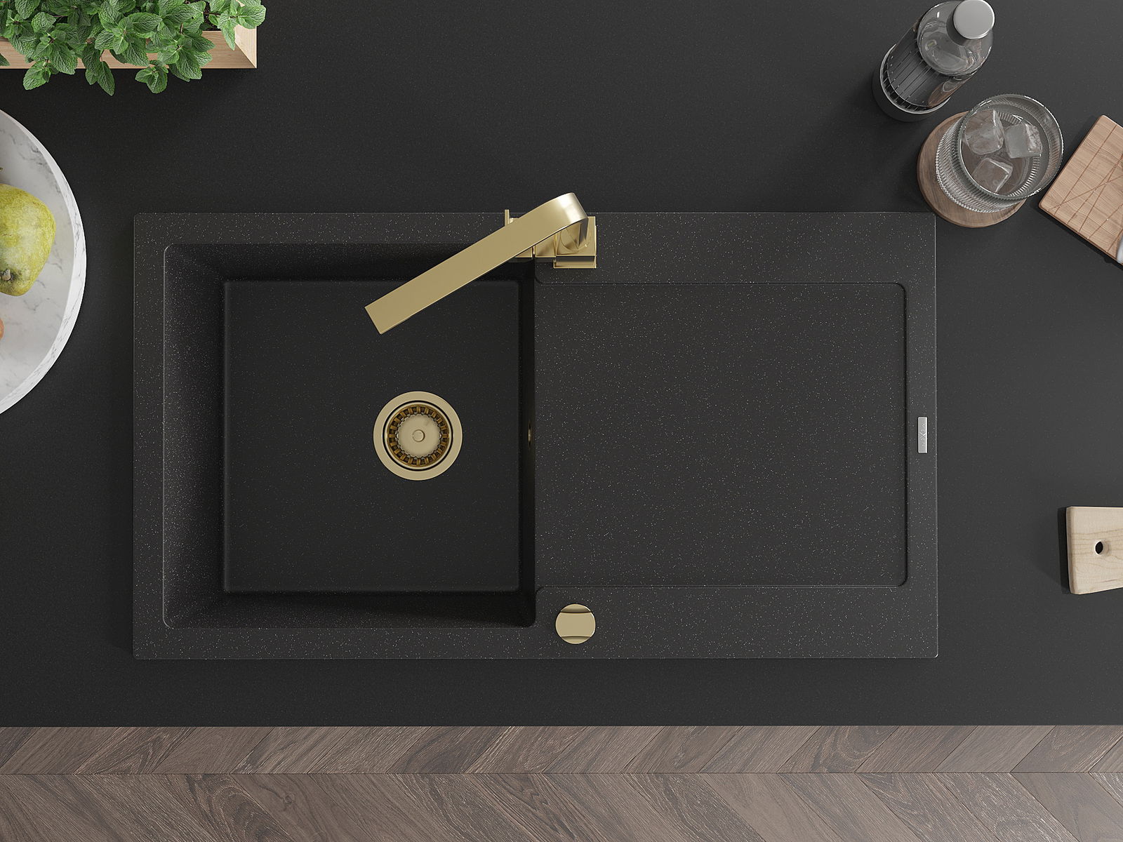 Mexen Leo chiuvetă de granit cu 1 compartiment și picurător și baterie de bucătărie Rita, metalic negru/argintiu - 6501-73-6703?