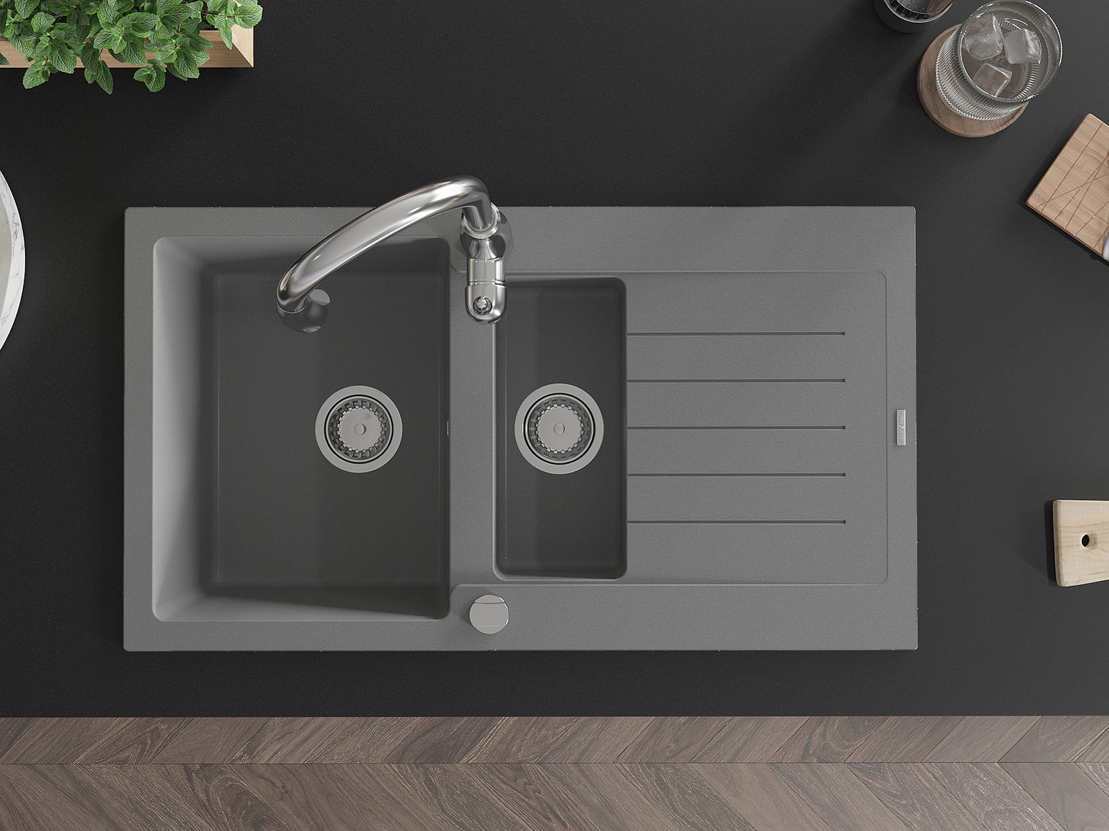 Chiuveta este confecționată din granit de înaltă calitate. Este un complement elegant și, mai ales, practic pentru fiecare bucătărie, indiferent de stilul său. Durabilitatea de înaltă calitate și granit asigură mulți ani de utilizare.