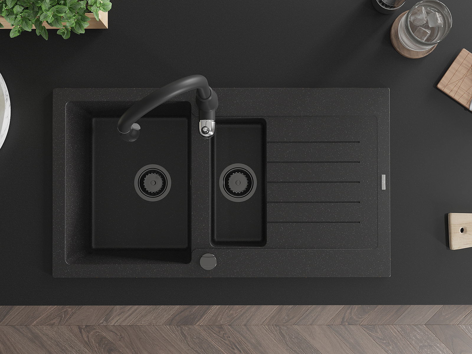 Chiuveta a fost realizată din granit de înaltă calitate. Reprezintă un complement elegant și, mai presus de toate, practic pentru orice bucătărie, indiferent de stilul acesteia. Calitatea înaltă și durabilitatea granitului asigură o utilizare de lungă durată.