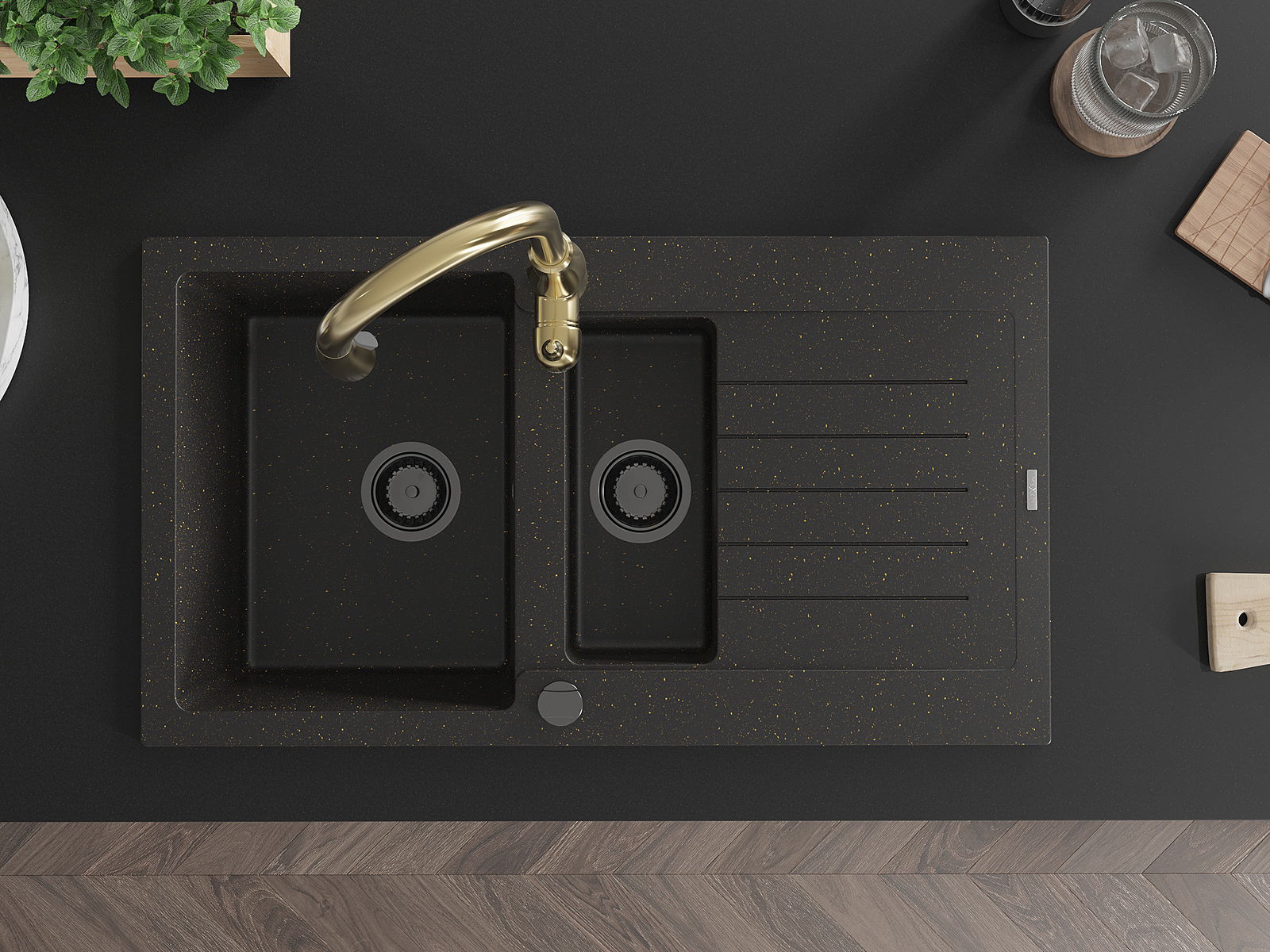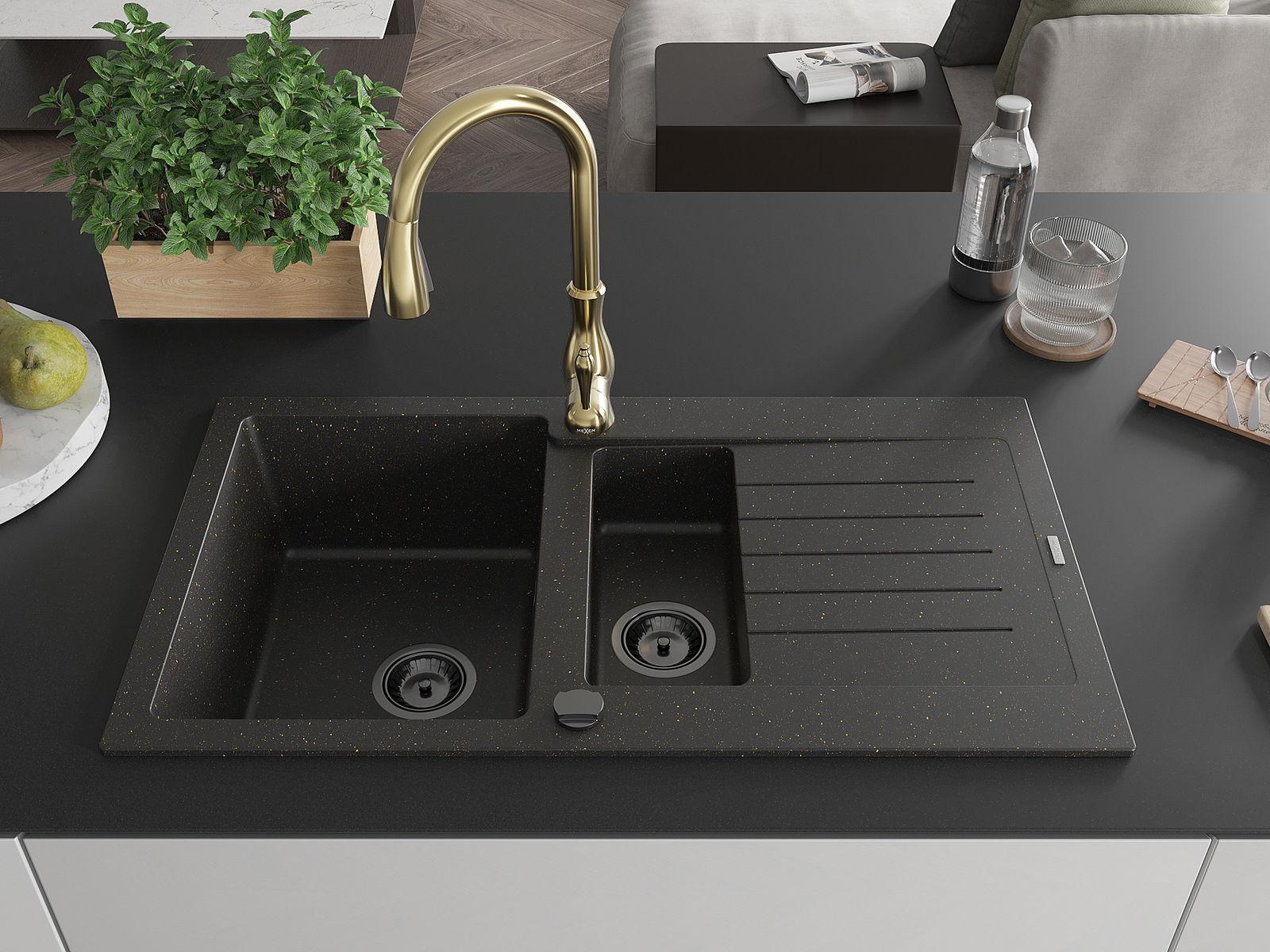 Mexen Matias chiuvetă de bucătărie din granit, cu 1,5 compartimente și scurgător, cu robinet de bucătărie Savita,