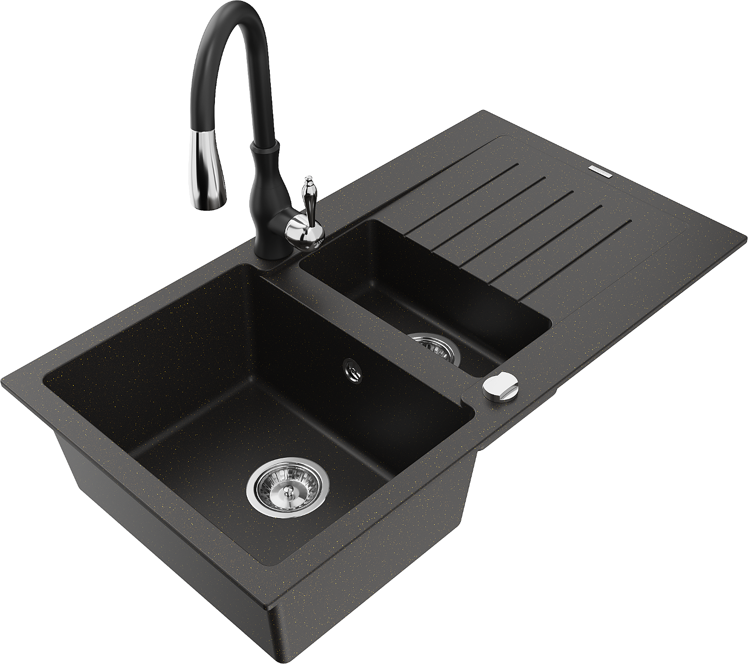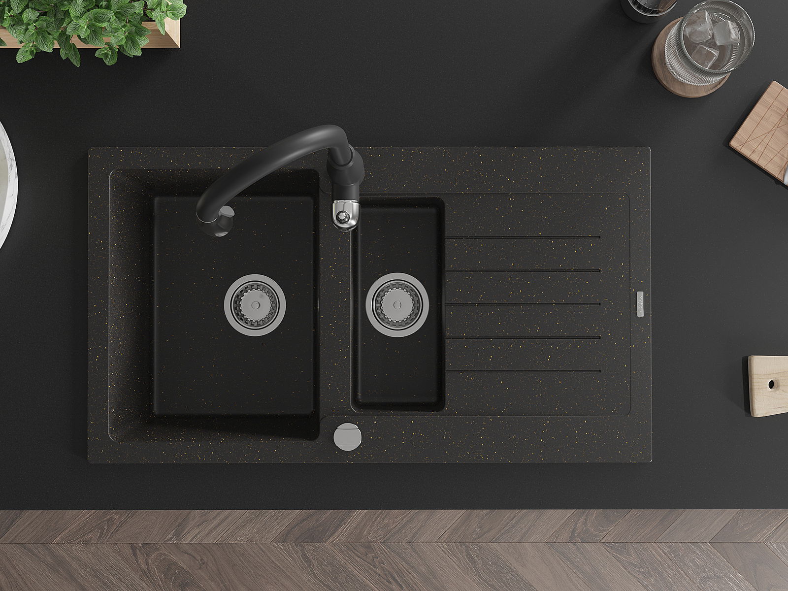 Mexen Matias chiuvetă de bucătărie din granit, 1,5 compartimente, cu scurgător și baterie de bucătărie Savita,