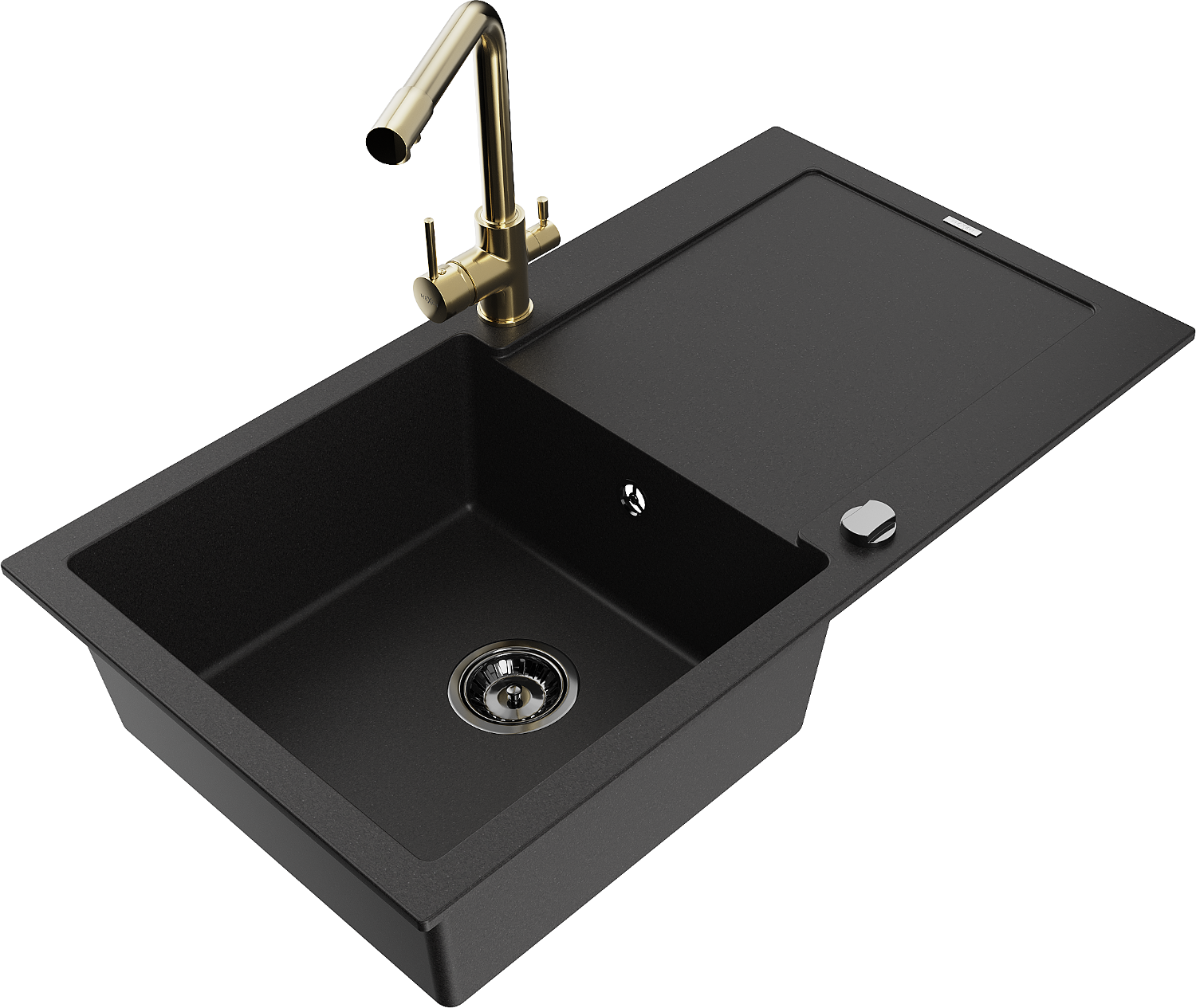 Mexen Leo chiuvetă de bucătărie din granit cu 1 compartiment, cu scurgător și baterie Duero, negru - 6501-77-671600-50-B