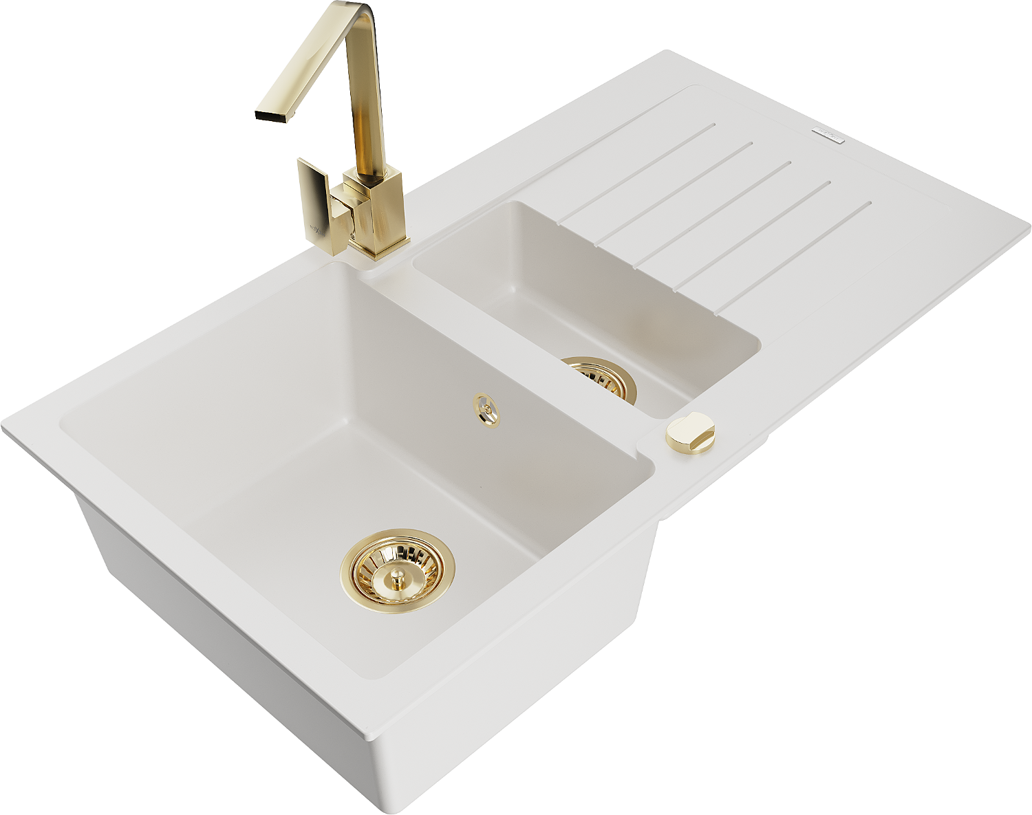 Mexen Matias chiuvetă granit 1,5 camere cu scurgător și baterie bucătărie Rita, alb - 6502-20-670300-50