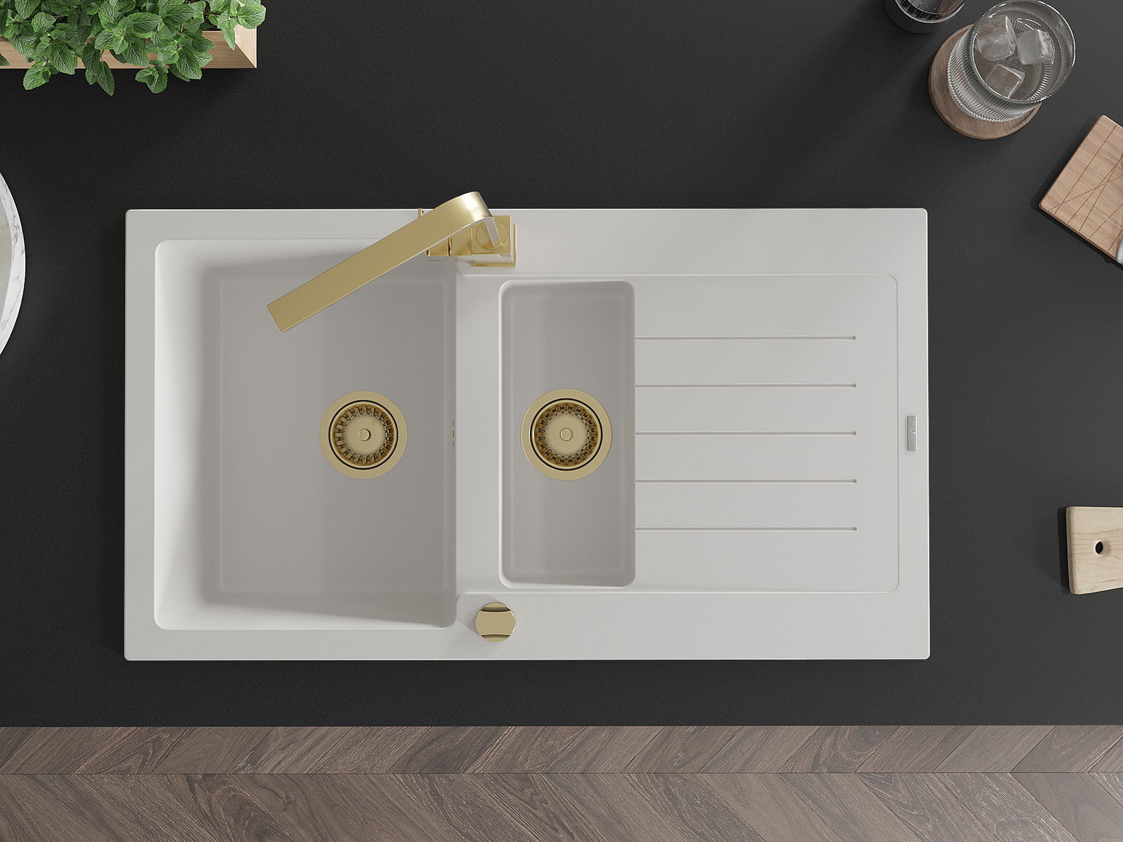 Datorită sistemului de montare universală, chiuveta este reversibilă, iar scurgerea poate fi montată pe blat la stânga sau la dreapta. În acest fel, puteți ajusta cu ușurință pagina la nevoile și condițiile dvs.