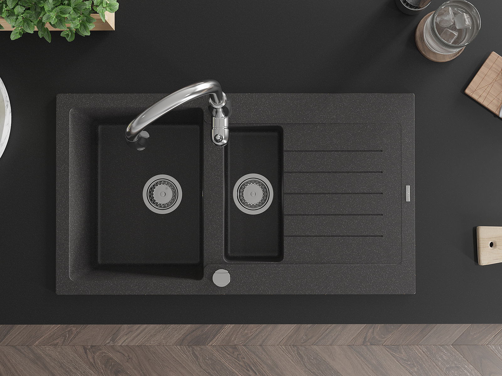 Datorită sistemului de montare universală, chiuveta este reversibilă, iar scurgerea poate fi montată pe blat la stânga sau la dreapta. În acest fel, puteți ajusta cu ușurință pagina la nevoile și condițiile dvs.