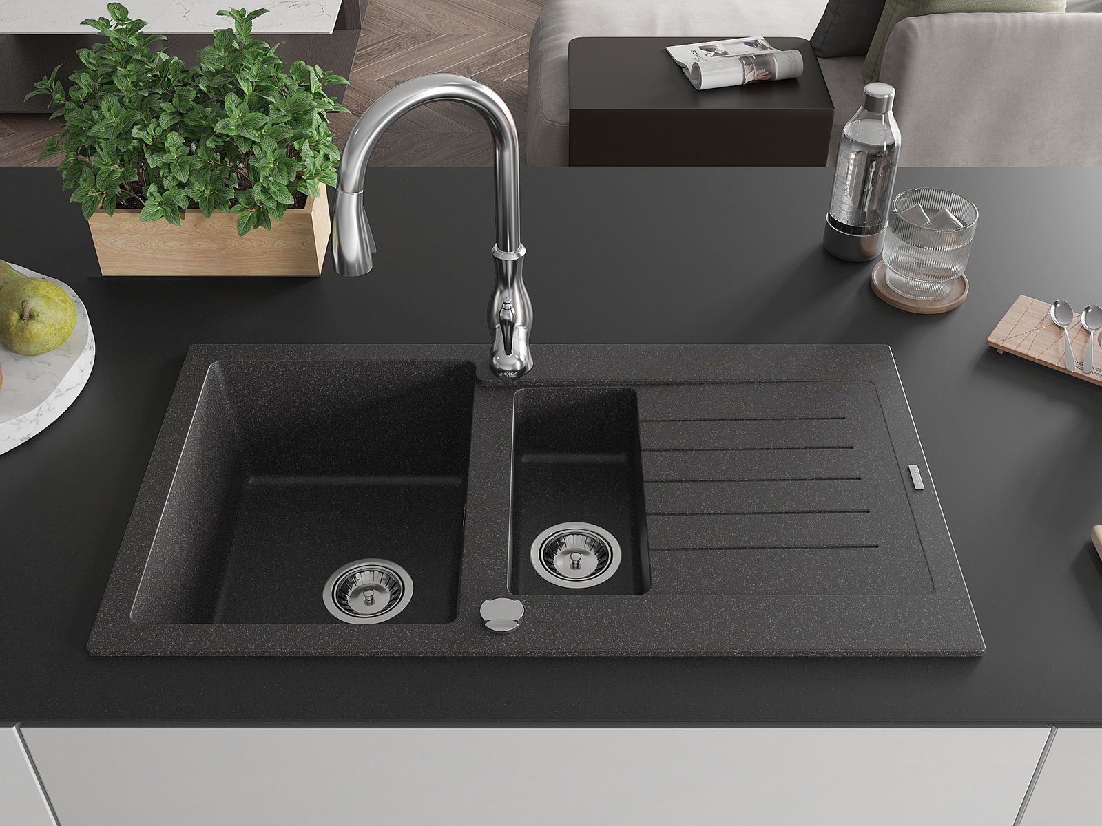 Suprafața chiuvetei este rezistentă la pete și decolorarea, datorită căreia este ușor de curățat și își păstrează culoarea mult timp. Estetică și practic completarea fiecărei bucătării.